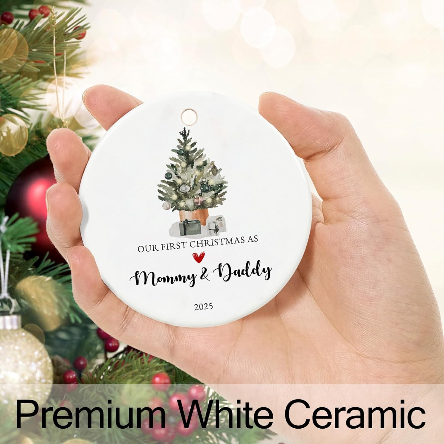 - Wonderful Christmas Ornament- Our first christmas as mommy and daddy ornament 2025 perfect decoration to holidays in home. Hang the First christmas as mom and dad ornament on the window,wall,Christmas tree,enhancing your holiday decor.and double-sided printing can see its beauty from any angle.