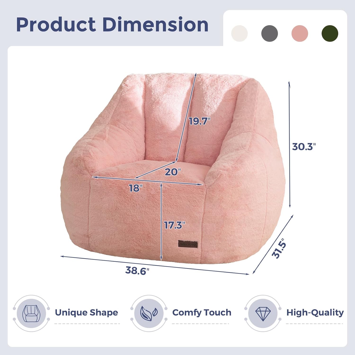 - High Density Shredded Foam: The interior of bean bag chair is made of high-quality fluffy shredded foam, which is highly resilient and support, ensuring lazy sofa comfort while ensuring excellent support