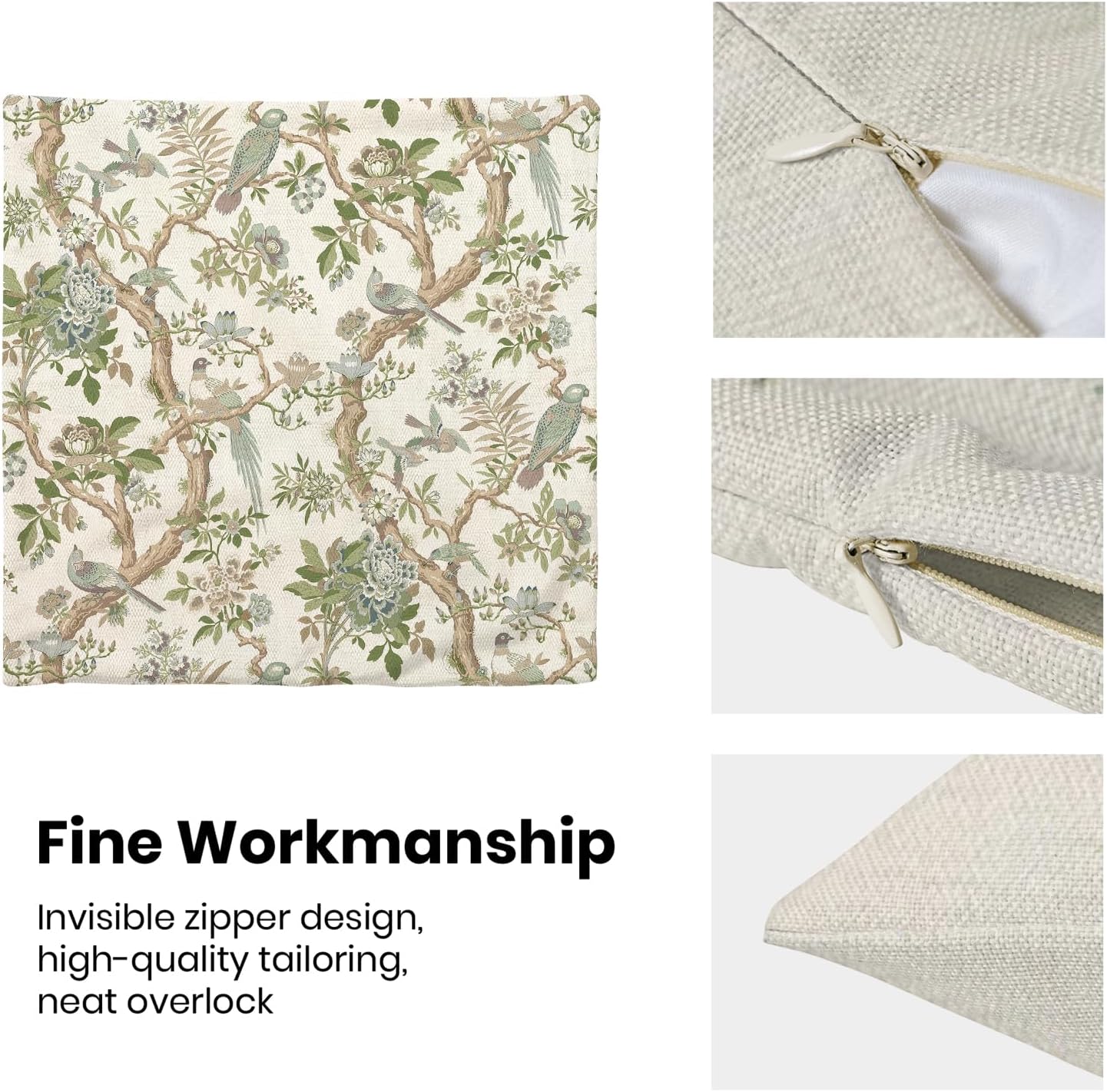 - 【Square Pillow Covers Size】 Chinoiserie flower birds pillow case set includes 2 pcs of farmhouse couch pillow covers (NO Pillow). Home decor farmhouse pillow covers measures 18x18 inch/ 45x45 cm. All the floral decor throw pillow covers have a hidden zipper. It is easy to insert or remove the pillow core to replace the spring pillowcase. Easy to clean and wash, sturdy and not easy to damage.
