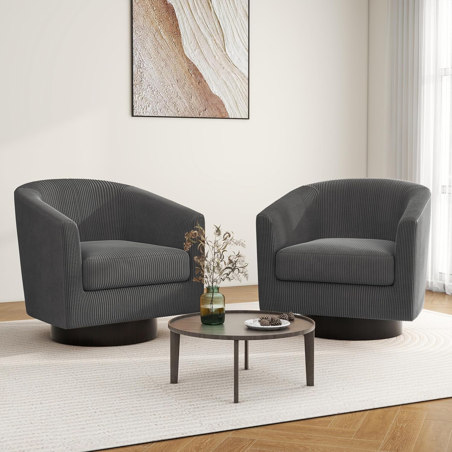 Swivel Barrel Accent Chair, Modern Round Corduroy Fabric Arm Chair for Living Room, Bedroom, Comfy Club Reading Chairs for Adults (Corduroy Grey, Set of 2)