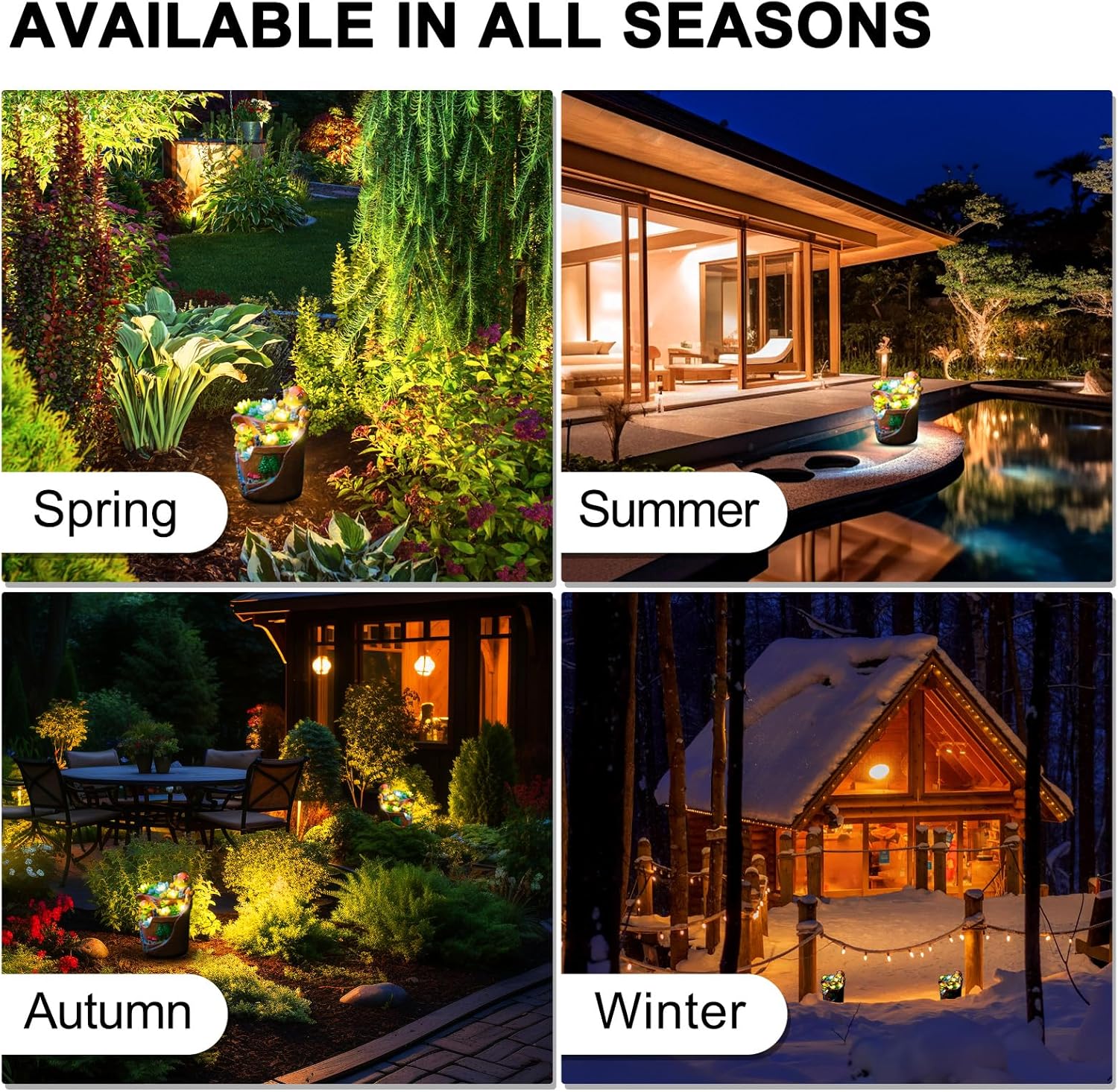 - [Creative Garden Decor] Elevate your garden with our stump succulent statues solar light! In the quiet of the night, these solar-powered succulent lights, once turned on, seem to come to life as if by magic. These charming Mushroom House, Ladybug, Squirrel, Frog, Dog not only light up your outdoor space but also add a touch of whimsy. Brighten your nights with eco-friendly magic!