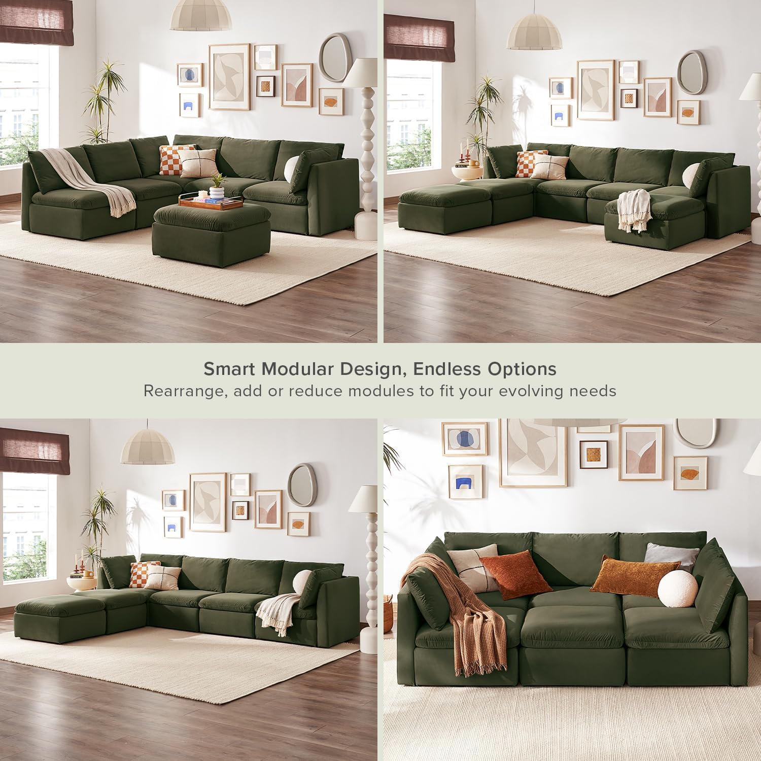 mopio Oversized Modular Sectional Sofa with Fully Removable Covers and Storage, Convertible U, L-Shaped and Sleeper Sectional, Modern Couches with Ottoman Chaise (Olive Green Velvet, 6 Seats, L)