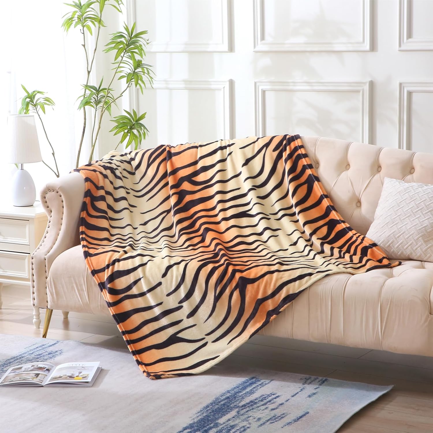 MERRYLIFE Tiger Stripe Print Throw Blanket Decorative Fleece Throw | Ultra-Plush Colorful | Couch Blanket Travel Lap | Home Gift Use(50" 60",Tiger)