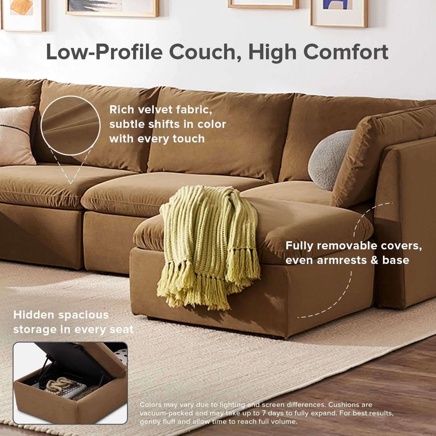 mopio Oversized Modular Sectional Sofa with Fully Removable Covers and Storage, Convertible U, L-Shaped and Sleeper Sectional, Modern Couches with Ottoman Chaise (Hazelnut Velvet, 6 Seats, U)