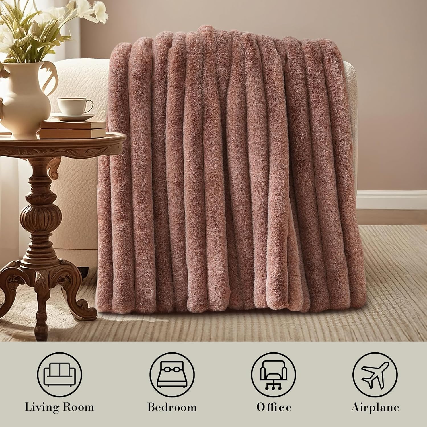 - Easy-Care & Long-Lasting: Zero Hassle Maintenance – Unlike real fur, this blanket thrives in your washing machine! Cold gentle cycle + low tumble dry keeps its lush texture intact. Stain-resistant fibers repel spills, and anti-pilling technology ensures it stays flawless for years. (Pro tip: Use a pet brush to fluff up the fibers after washing!)