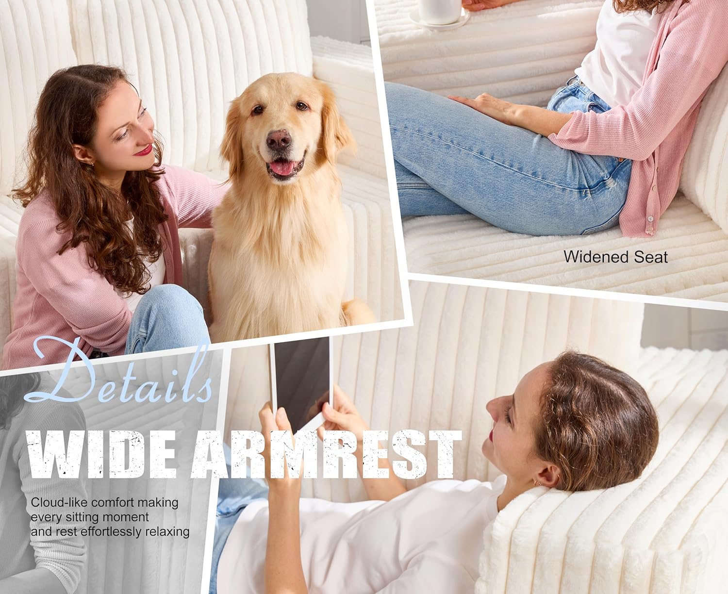 Modular Sectional Sofa 3-Seater Modular Couch with Deep Seat Memory Foam Cloud Chair with Pillows Oversized Sectional Sofa for Living Room Bedroom (Strip White, 3-Seater)