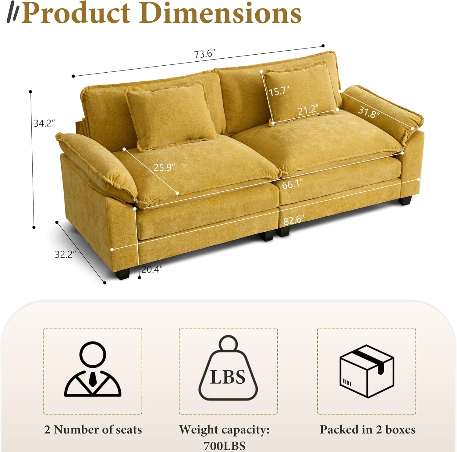 - Product Dimensions : 32.2"D x 82.6"W x 34.2"H