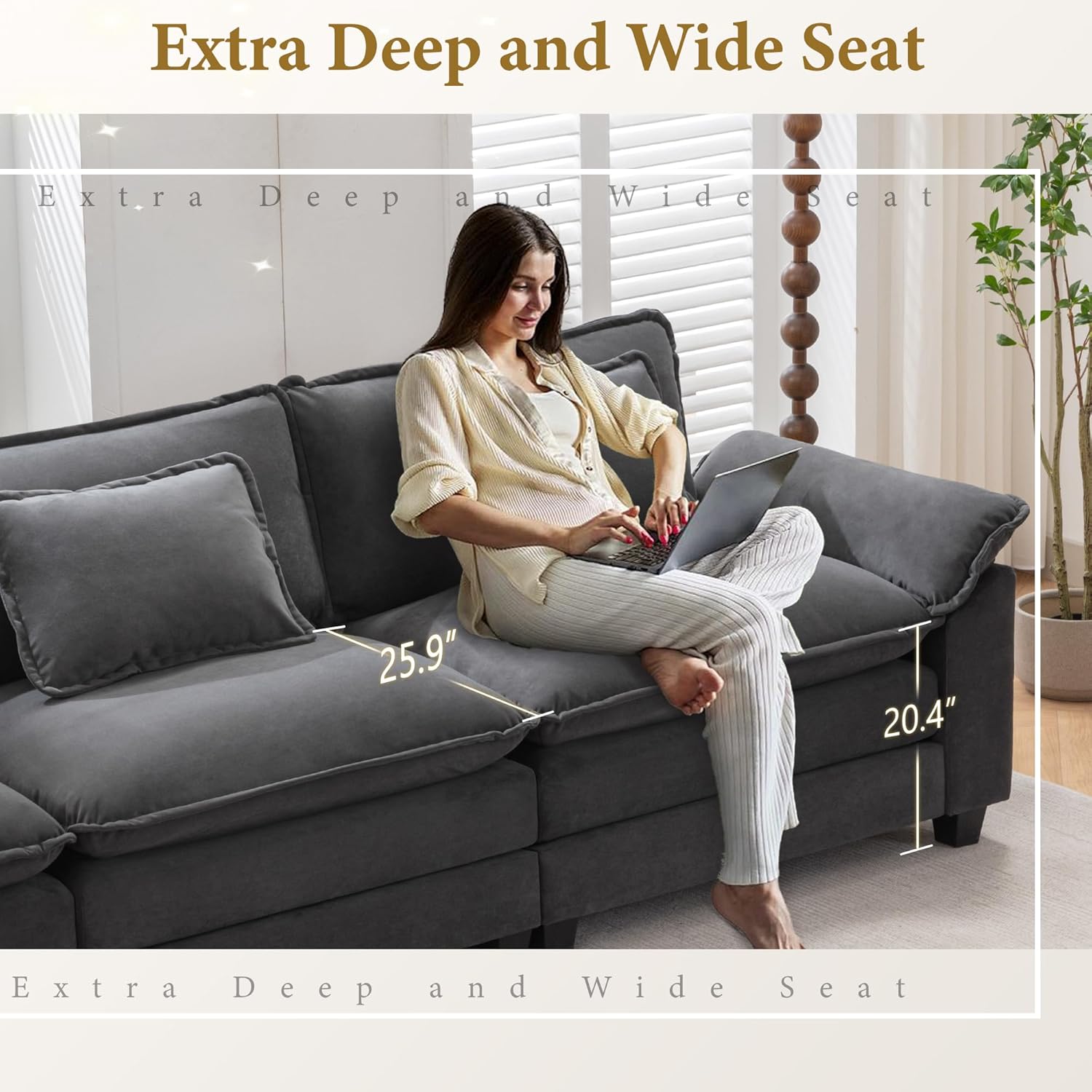 - Comfortable Seat Deep and seat width: This sofa has a hardwood frame as its basic structure and is filled with cotton for breathability and comfort. Our sofa cushions are deeper and wider and the cushions are removable!