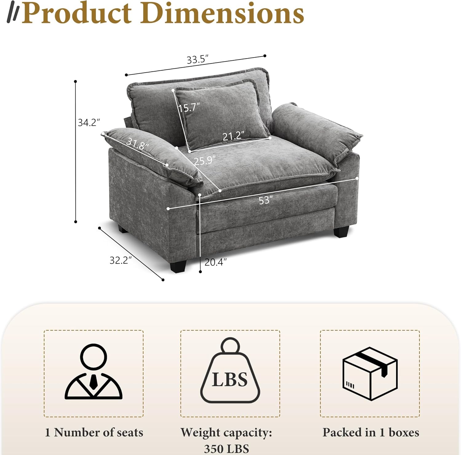 - Product Dimensions : 32.2"D x 53"W x 34.2"H