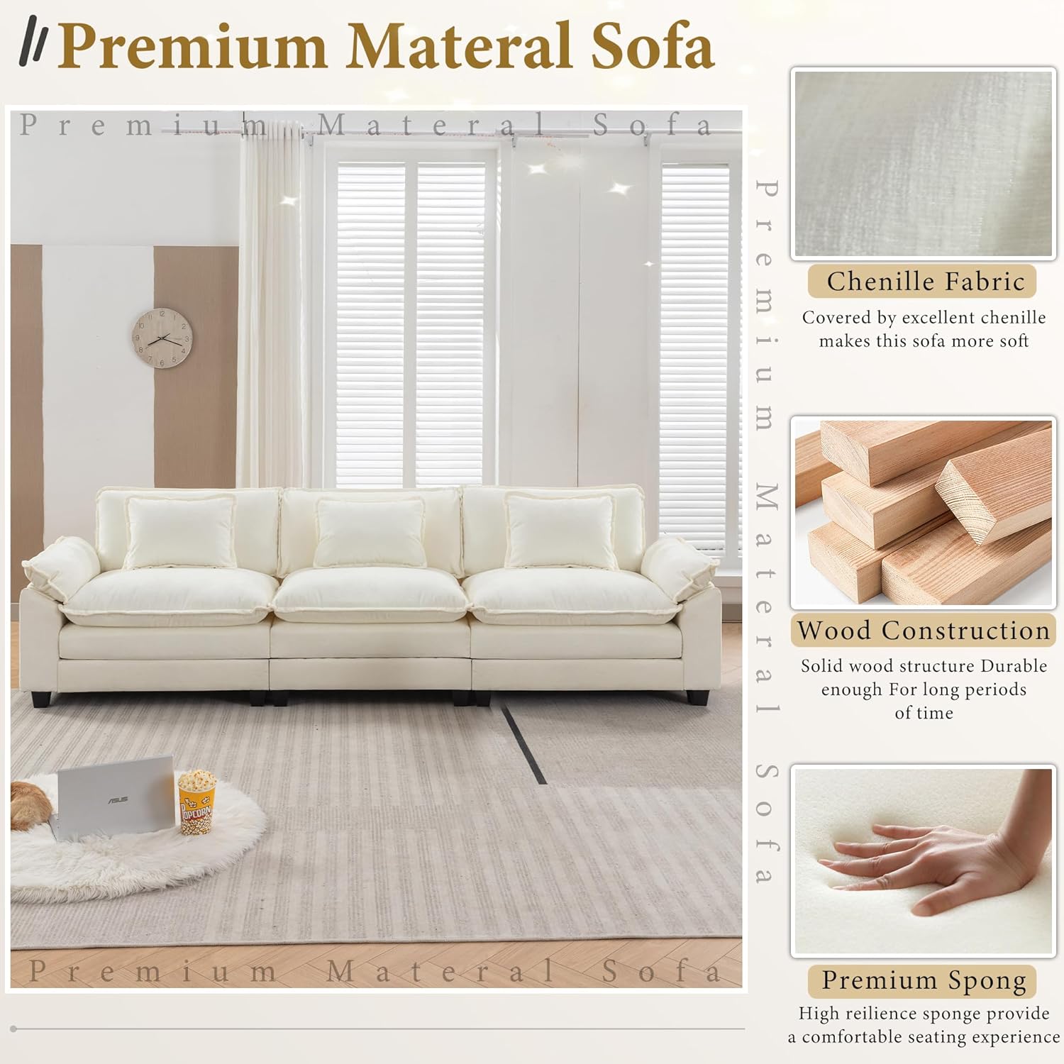 - Soft and Skin Friendly: This sofa is made of chenille fabric, which is soft and gentle to the skin.The cushions are super soft, sitting on them is like being wrapped in cotton, soft and comfortable!