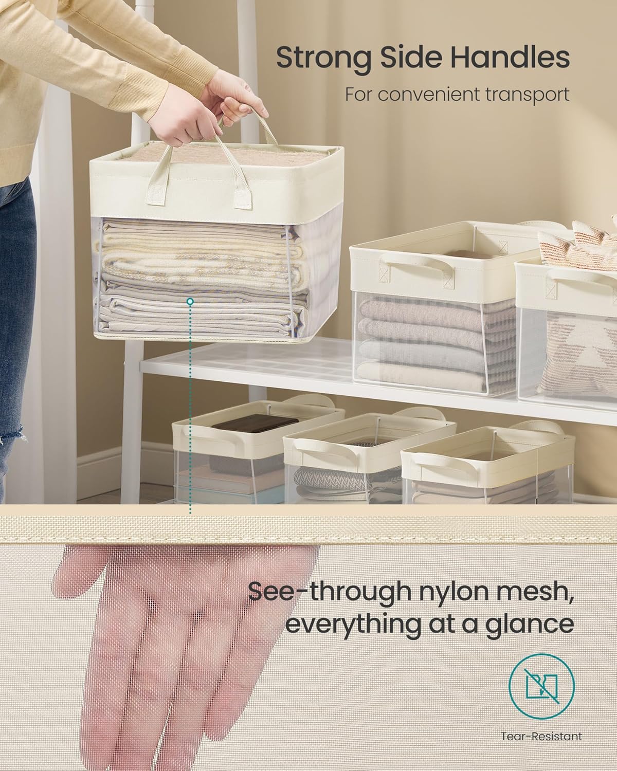 - Everything in Sight, Everything in Order: With the transparent nylon mesh, you can quickly locate what you need. These fabric bins help maintain a tidy appearance in your home