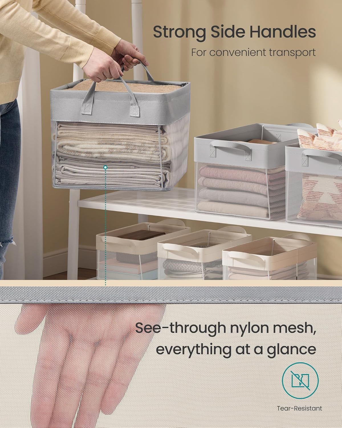 - Everything in Sight, Everything in Order: With the transparent nylon mesh, you can quickly locate what you need. These fabric bins help maintain a tidy appearance in your home