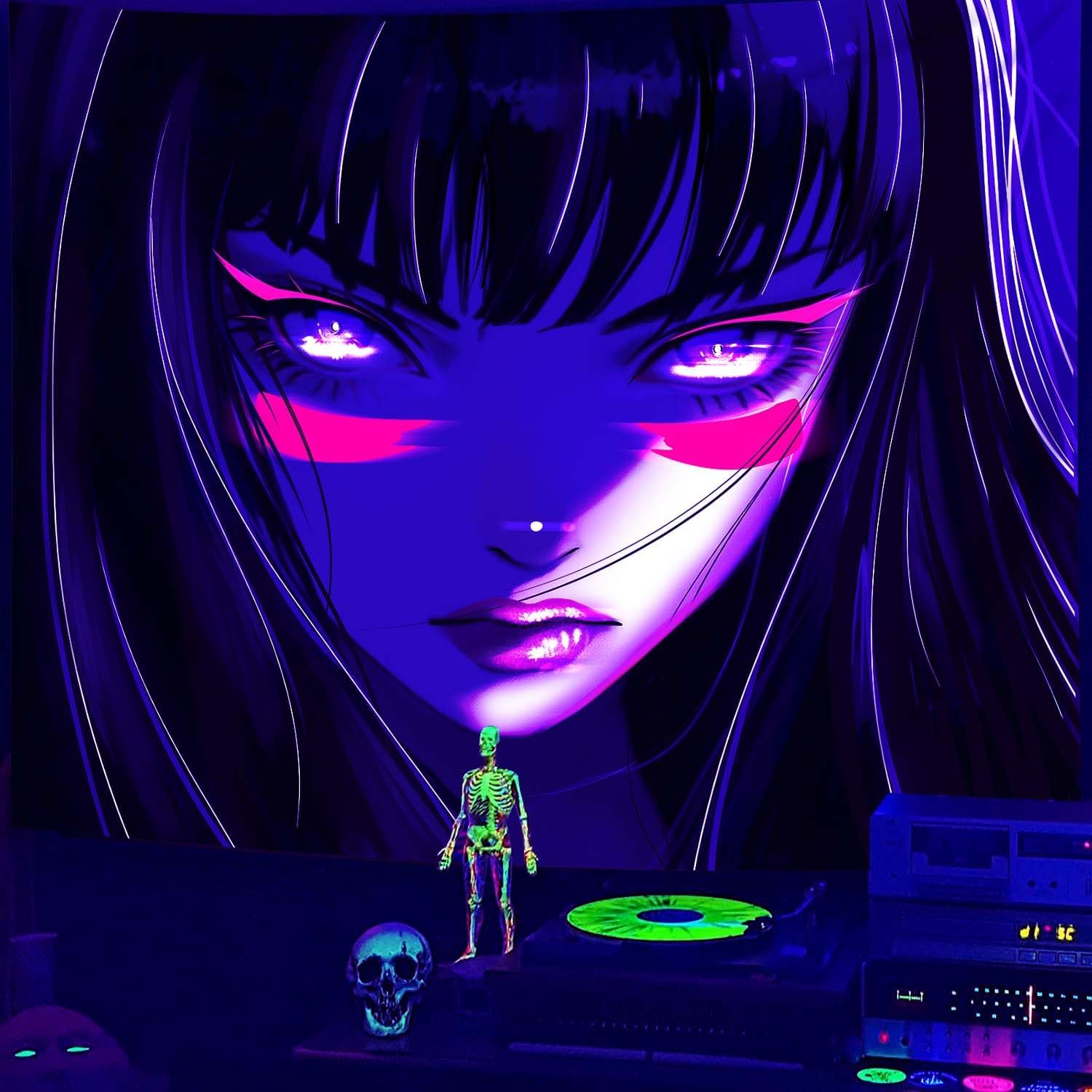 dueeia Blacklight Anime Girl Tapestry Wall Hanging Japanese Cool Black Light Glow in the Dark Uv Tapestries for Boys Girls Bedroom Aesthetic Living Room Dorm Wall Decor (59.1"x39.4")