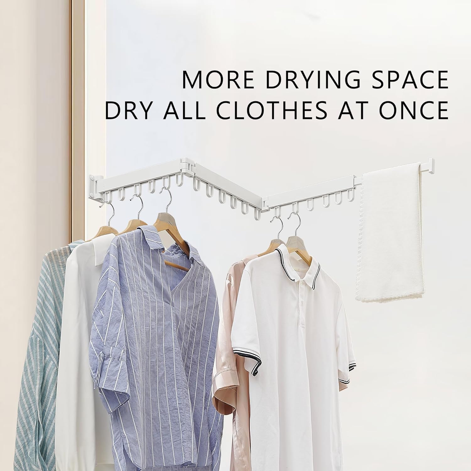 - Sturdy and Durable: This clothes drying rack wall mounted is perforated for installation;The collapsible drying racks for laundry is heavy and durable, can withstand greater weight.The collapsible drying racks for laundry can hang a large number of clothes at one time