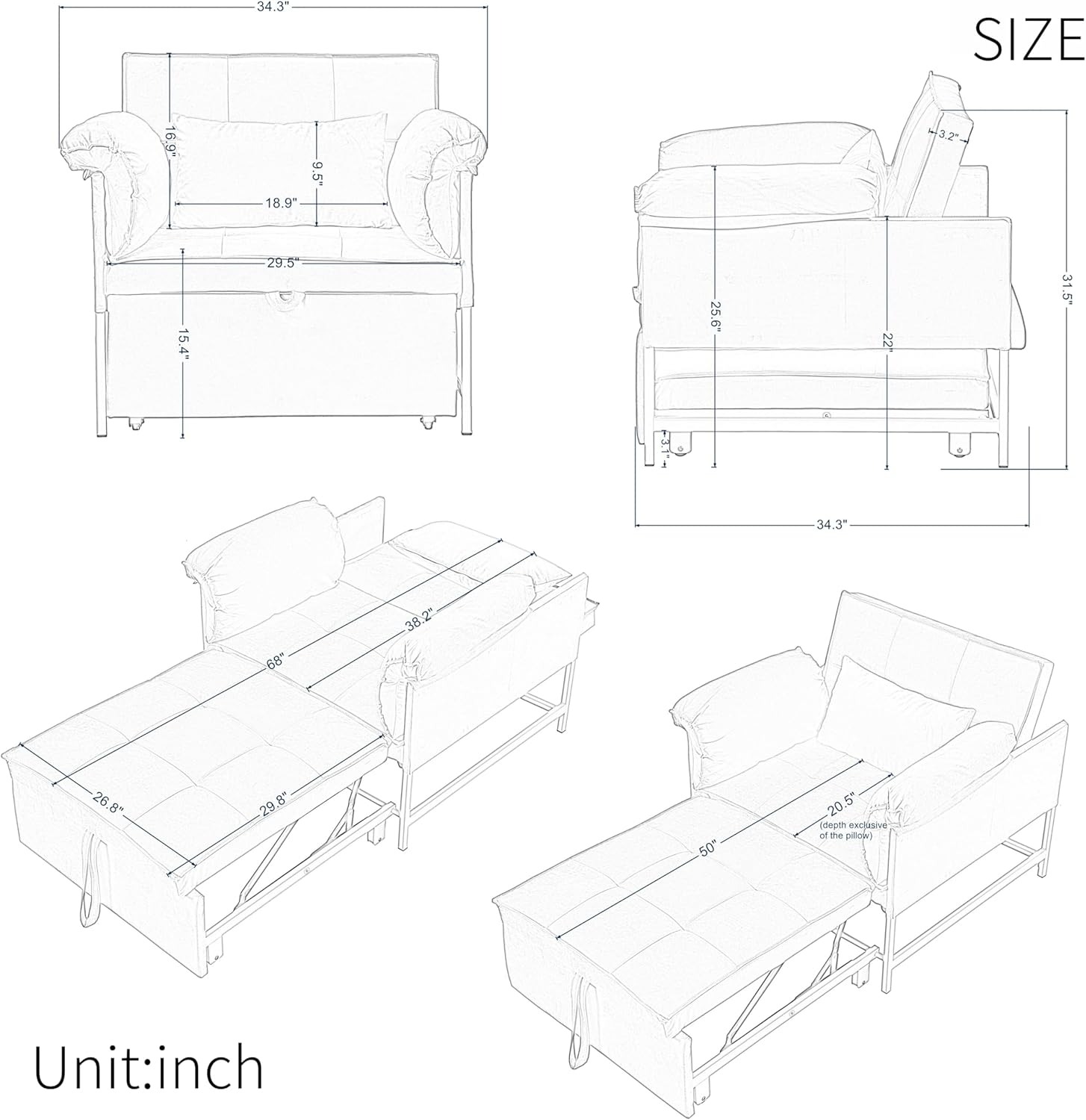 - Space-Efficient Design: Ideal for smaller apartments or homes, this small couch armchair sleeper maximizes functionality while fitting into tight spaces. Its foldable design allows for easy storage when not in use.