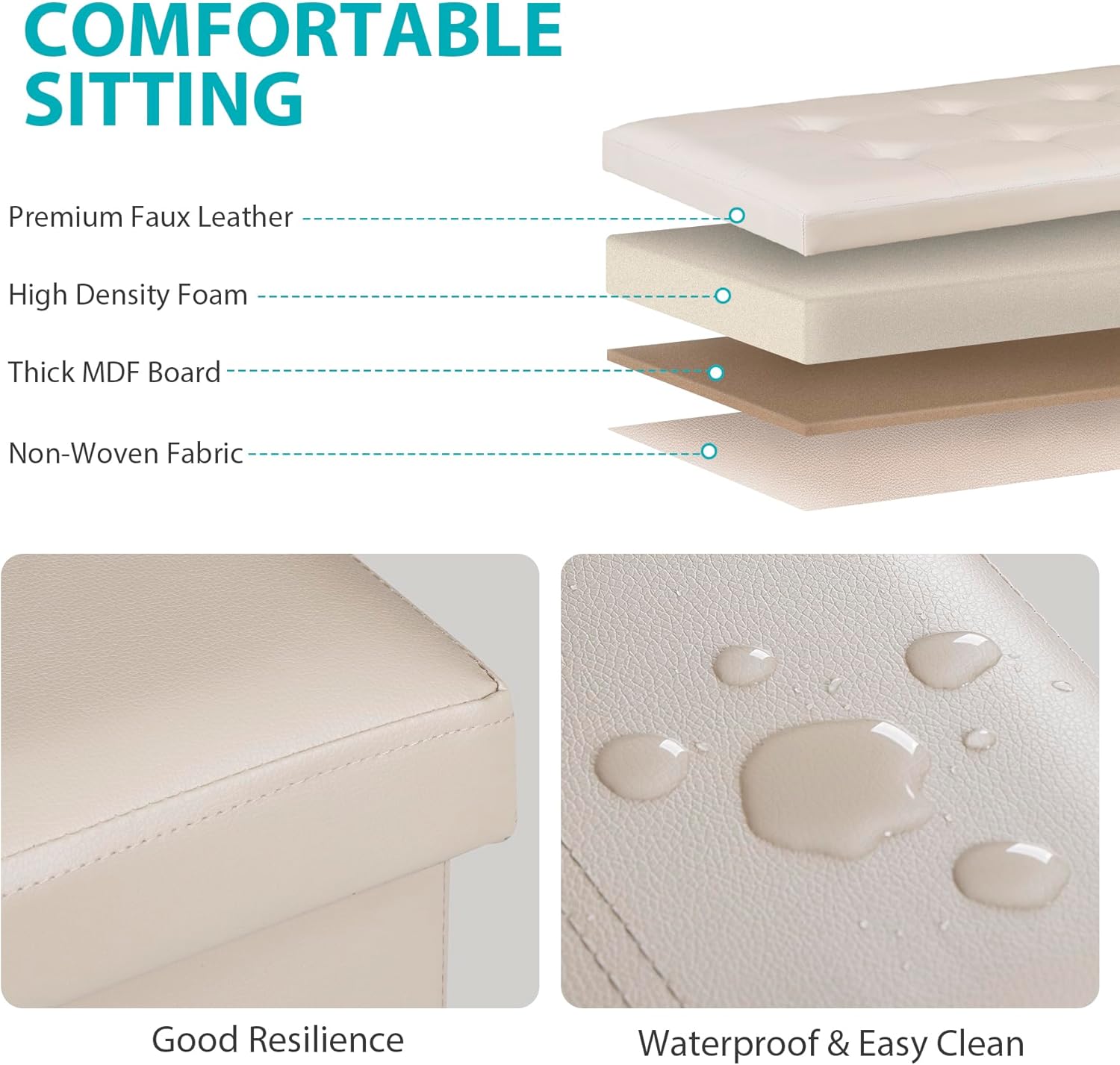 SUPER DEAL Folding Ottoman Bench with Storage, 43 Inch Padded Seat Footrest Shoes Bench for Bedroom Living Room Entryway, 660 lbs Capacity 43"x 15"x 15", Faux Leather, Beige
