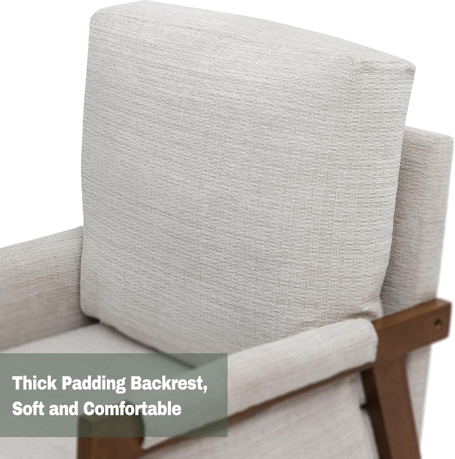 Modern Accent Chair for Living Room Mid Century Arm Chair Upholstered Bedroom Chair Comfy Lounge Chair with Solid Wood Frame, White