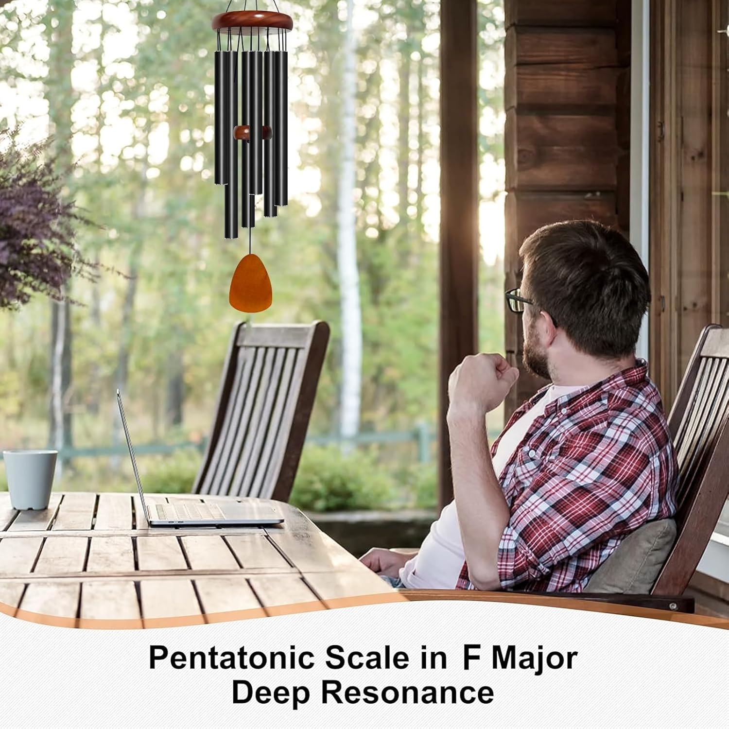 - Deep Tone Wind Chimes for Outside: This wind chime has a total length of 29 inches and uses a 6-length combination of 11.1/10.5/9.9/9.1/8.6/7.9. The scale is manually adjusted to F major, creating a relaxing and enjoyable melody. The diameter of the tube is 0.75 inches, making the sound more persistent and long-lasting. The wall thickness of the tube is 0.06 inches, and the sound is neither hollow nor sharp. When a gentle breeze blows by, wind chimes will play a relaxing music for you.