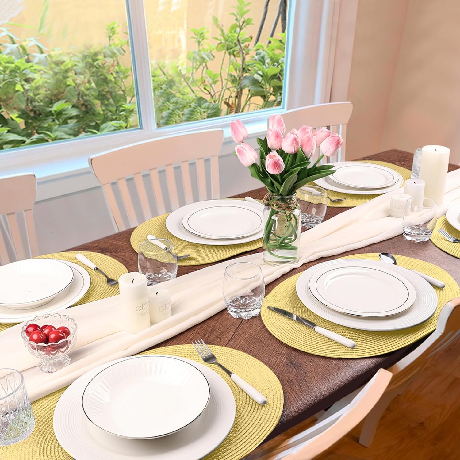 - Material:Crafted from 100% durable polypropylene, these hand-braided mats resist stains and maintain shape through repeated use. Ideal for daily meals or special occasions.