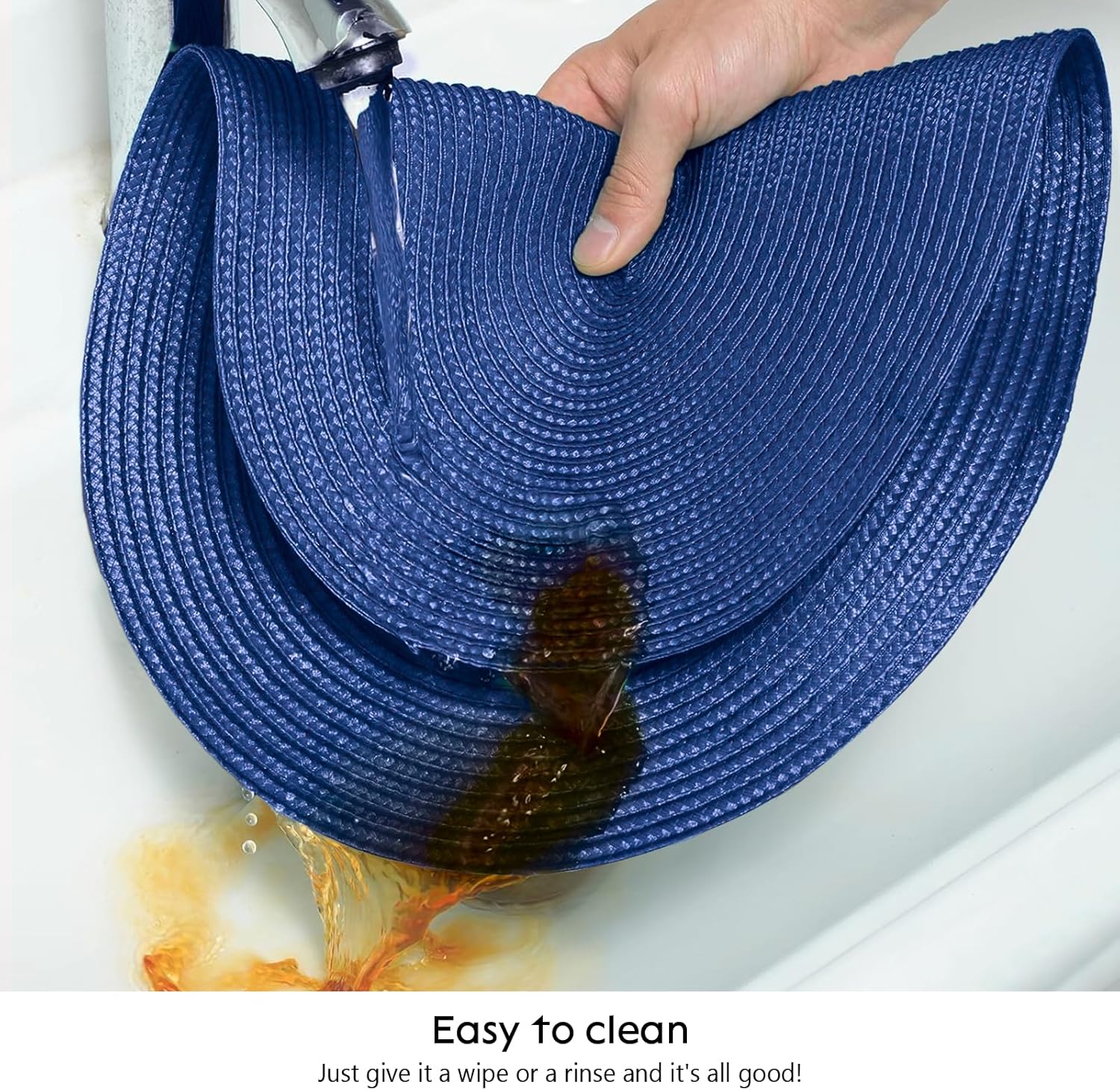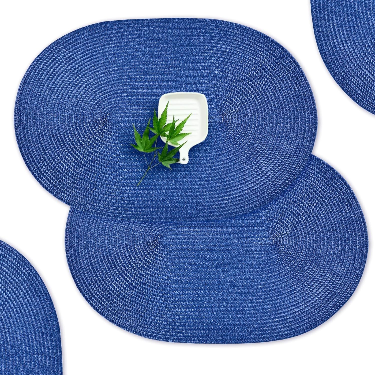 AHHFSMEI Placemats Set of 6 for Dining Table Washable Woven Vinyl Non-Slip 18x12 inches Placemat Heat-Resistant Durable Table Mats for Dining Table Easy to Clean(Navy Blue)