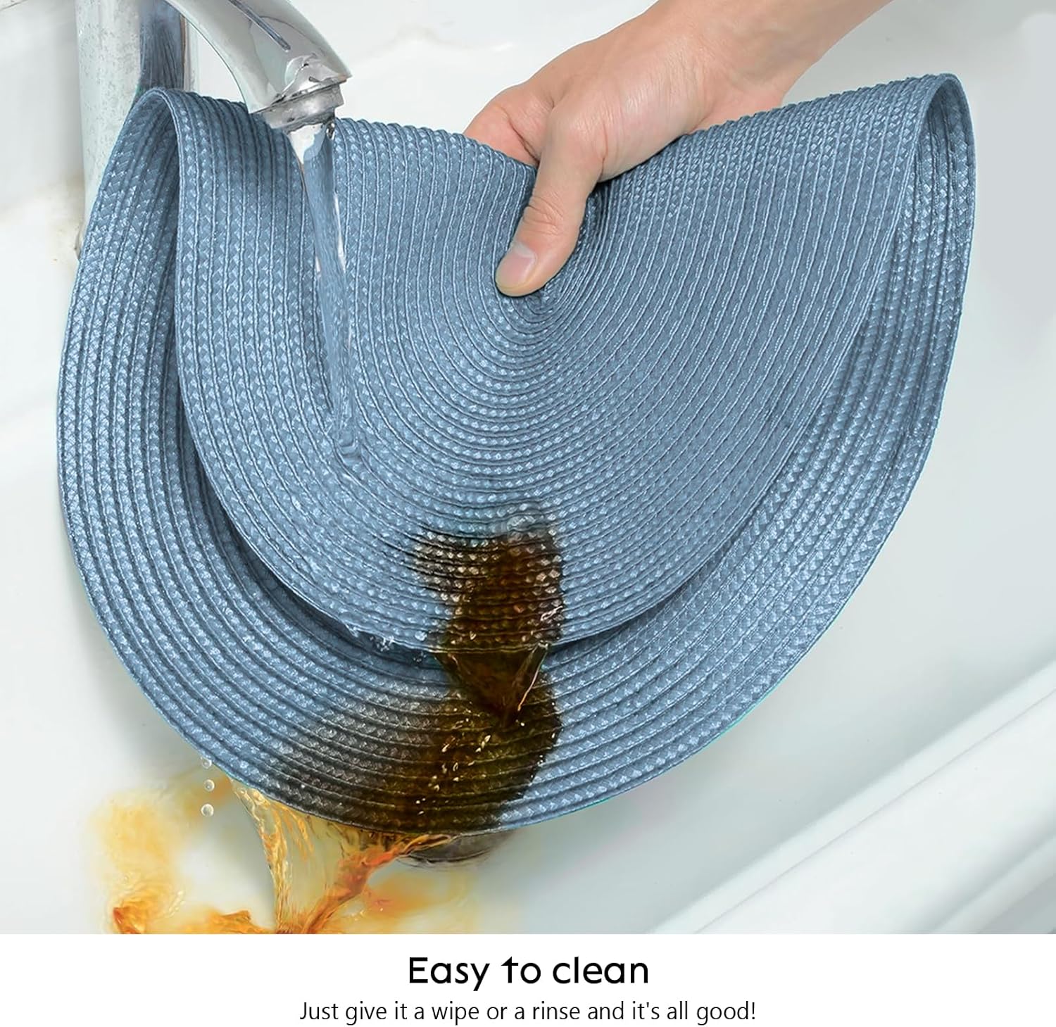 AHHFSMEI Placemats Set of 4 for Dining Table Washable Woven Vinyl Non-Slip 18x12 inches Placemat Heat-Resistant Durable Table Mats for Dining Table Easy to Clean(Light Blue 4)