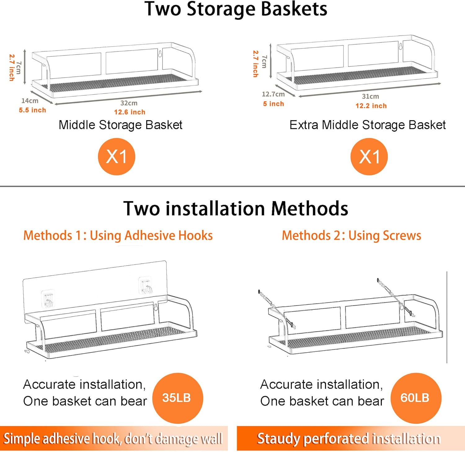 PUSDON Metal Wall Hanging Basket 2 Packs DIY Suitable for Multiple Scenes - White Hollowout 12.6in