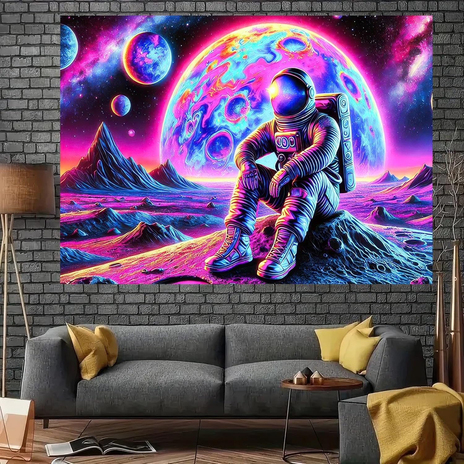 - A Fun and Bold Statement Piece for Events: This fluorescent tapestry adds energy and creativity to themed parties or gatherings. Whether you're hosting a space-themed event or just love the cosmic style, its colorful design will be a captivating centerpiece.