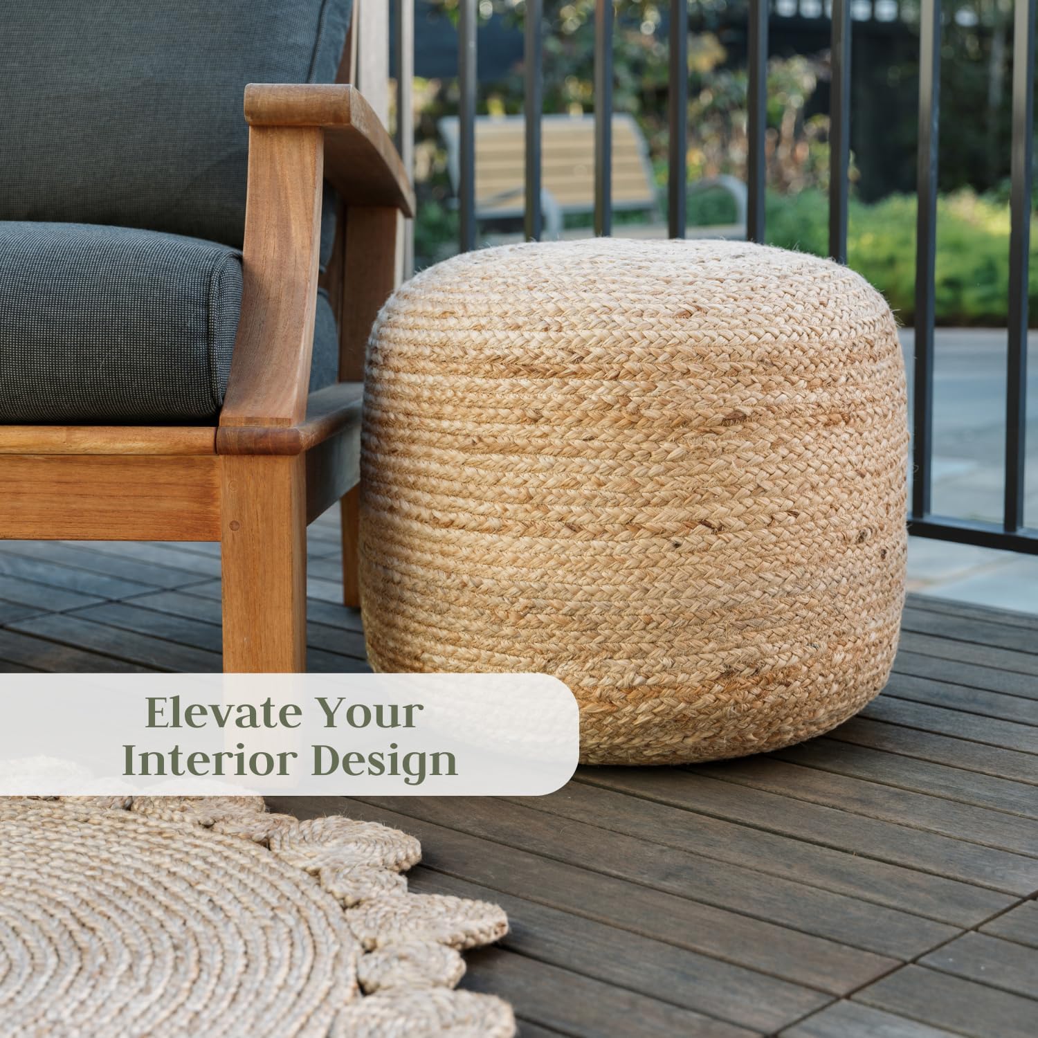 - HIGH QUALITY MATERIAL: Beyond its aesthetic appeal, our pouf is crafted for durability. Made from strong natural jute fibers, it withstands daily use and is easy to maintain with a simple spot clean. It is handwoven giving each pouf a unique appeal.