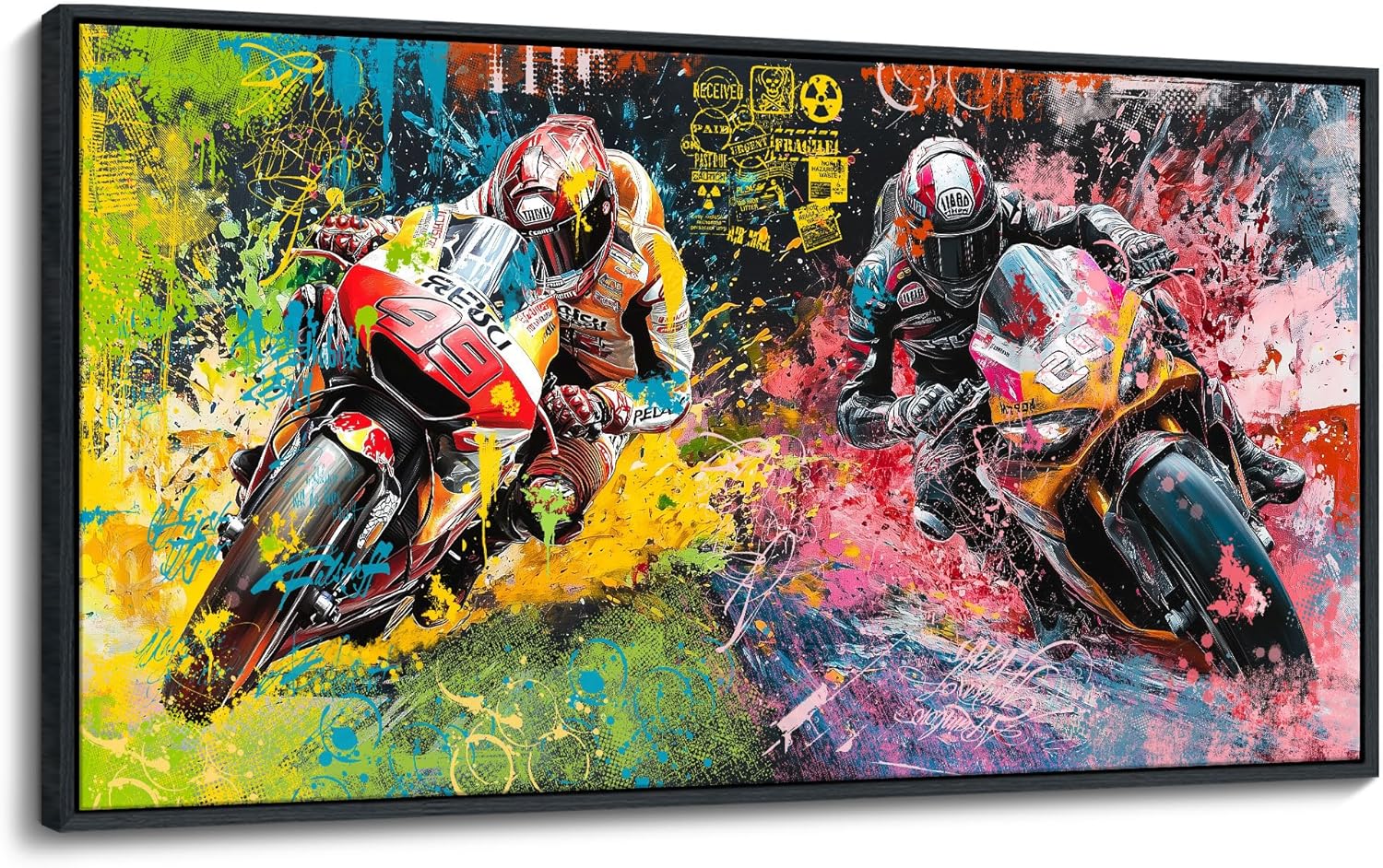 JEAWA Framed Canvas Wall Art - 20x40 In Abstract Painting Decor, Motorcycle Racing Color Graffiti Pictures, Modern Art Prints for Bedroom Living Room Bathroom Home Decoration