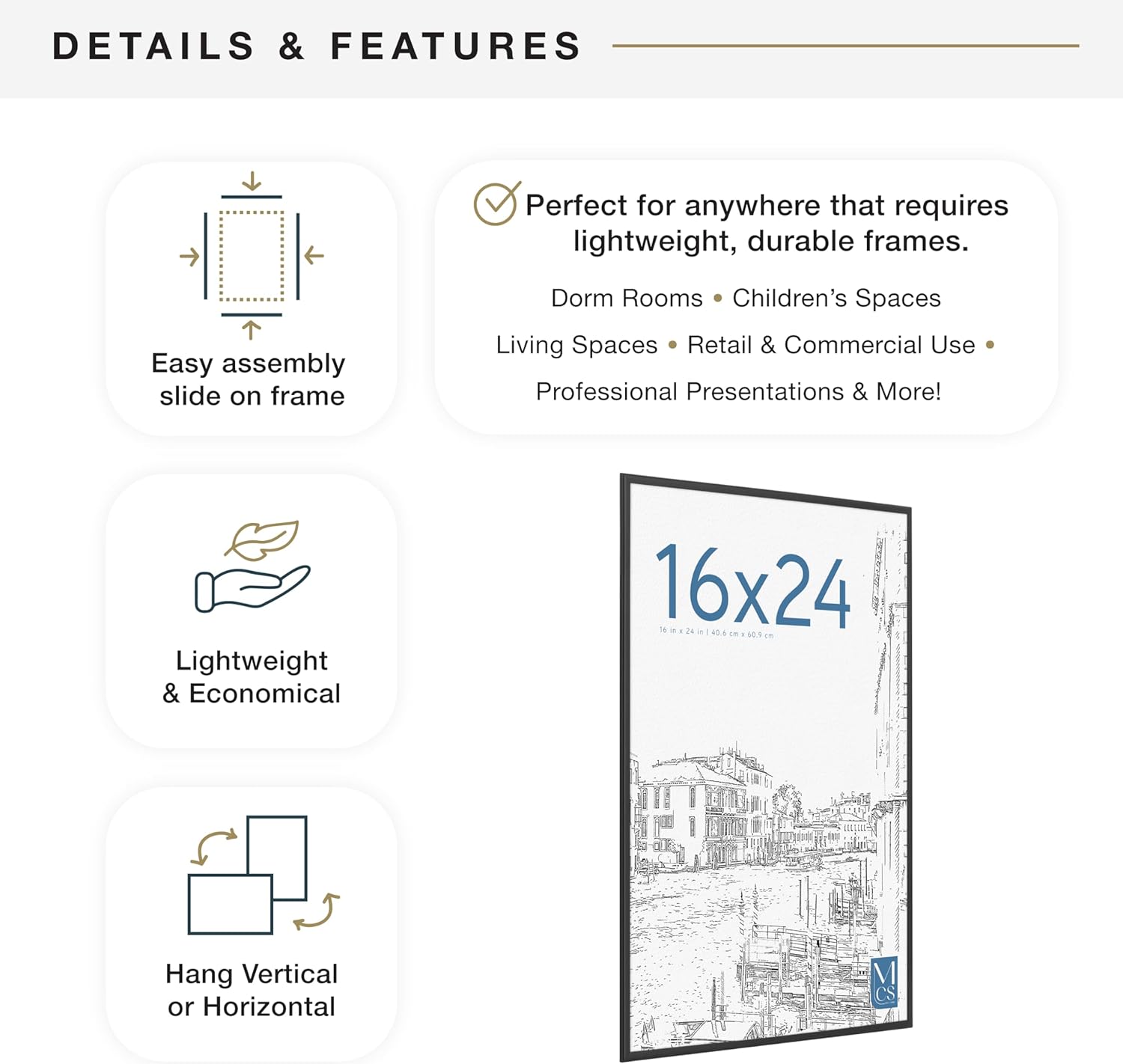 MCS Original Poster Frame 16x24 Black Lightweight Vertical & Horizontal Wall Hanging Large Picture Frame for Posters, Art Prints & Gallery Wall (3-Pack)