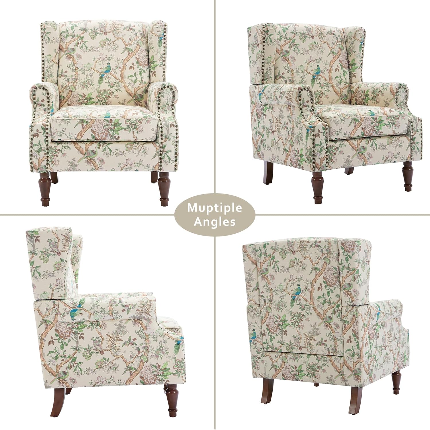 - Modern Design:This mid-century modern pushback chair features a classic wingback design with a floral and bird pattern on the fabric that adds a more upscale touch to the decor for visual enjoyment! Place it in your studio to enhance office comfort; by the fireplace for casual holiday time; or in your bedroom for cozy lounging.