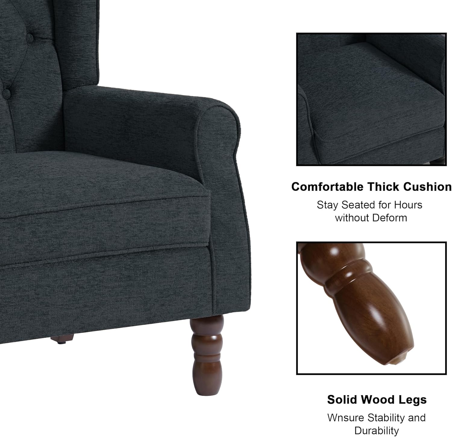 - High Back Accent Chair: The wingback of living room chairs is higher, which can better relieve the pressure on the back and waist, and bring a comfortable sitting experience