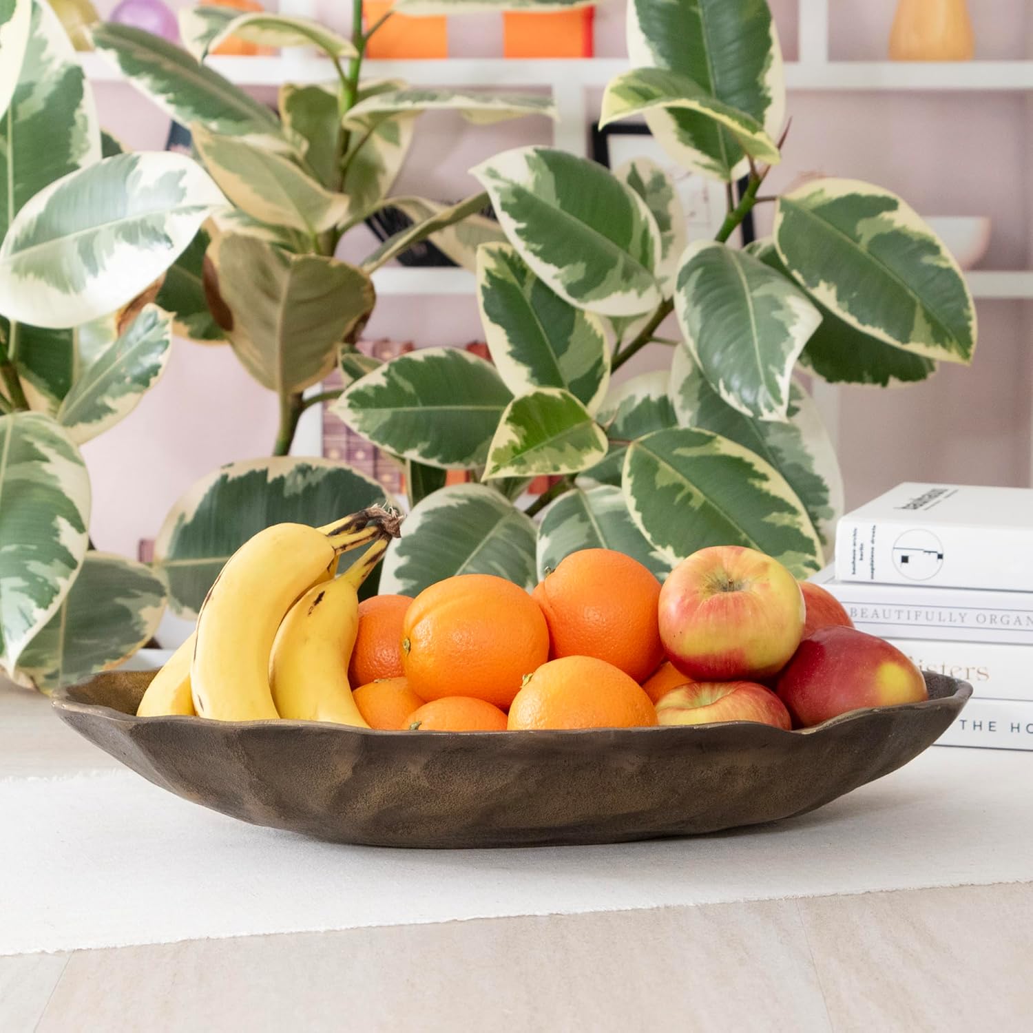 ANDALUCA Set of 2 Oval Metal Decorative Table Bowls, Bronze Finish