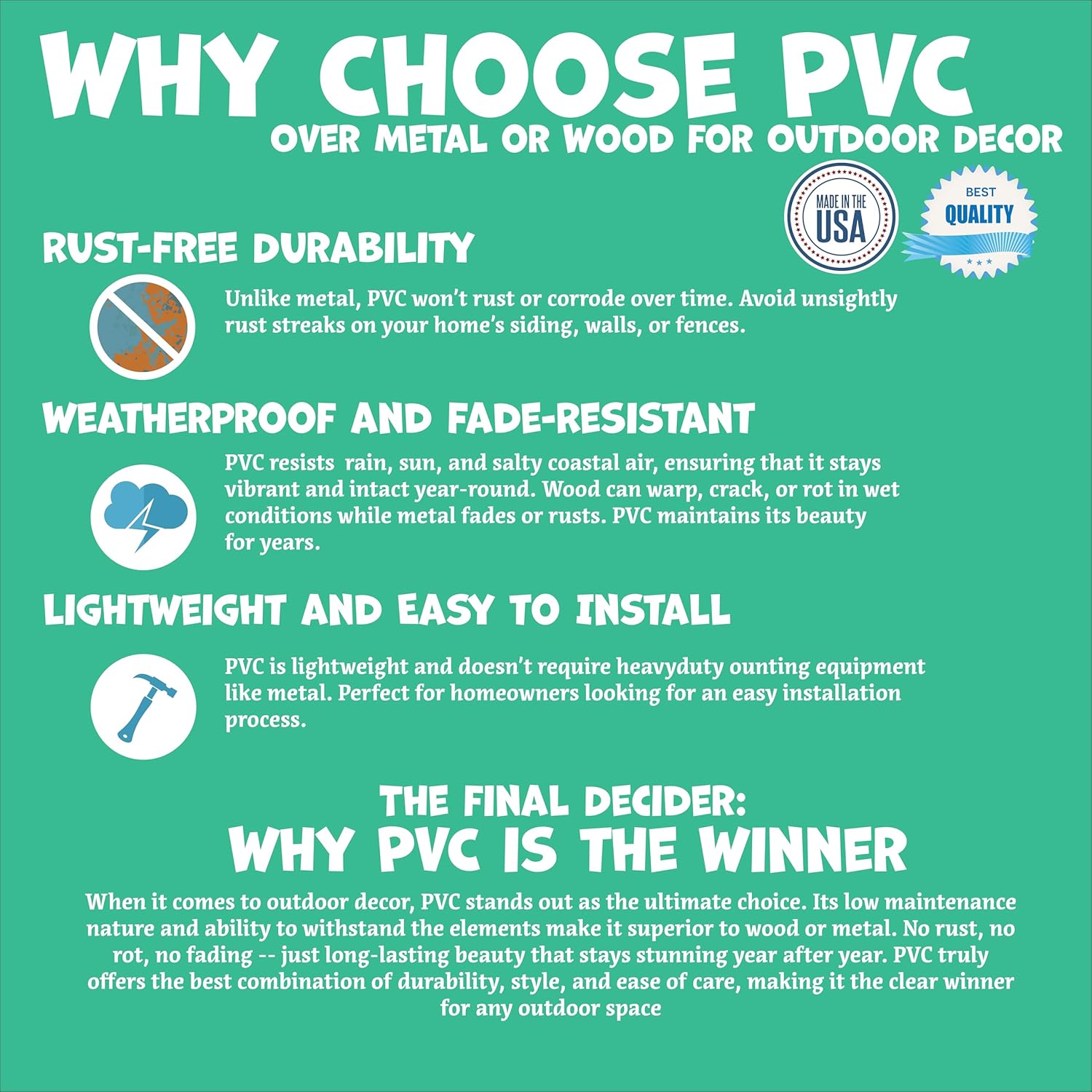 - Durable Weatherproof PVC – Crafted from high-quality PVC, this 48" impact-resistant anchor sign won’t rust, rot, or warp, making it ideal for harsh coastal environments and long-lasting outdoor use.