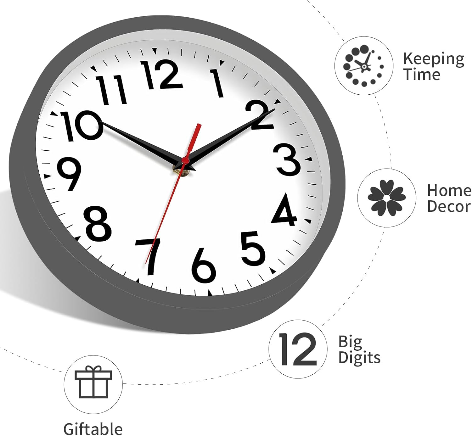 Wall Clock Small Analog 8 Inch Silent Non Ticking Battery Operated Modern Simple Decorative for Kitchen Office Bedroom Bathroom Living Room(Gray)