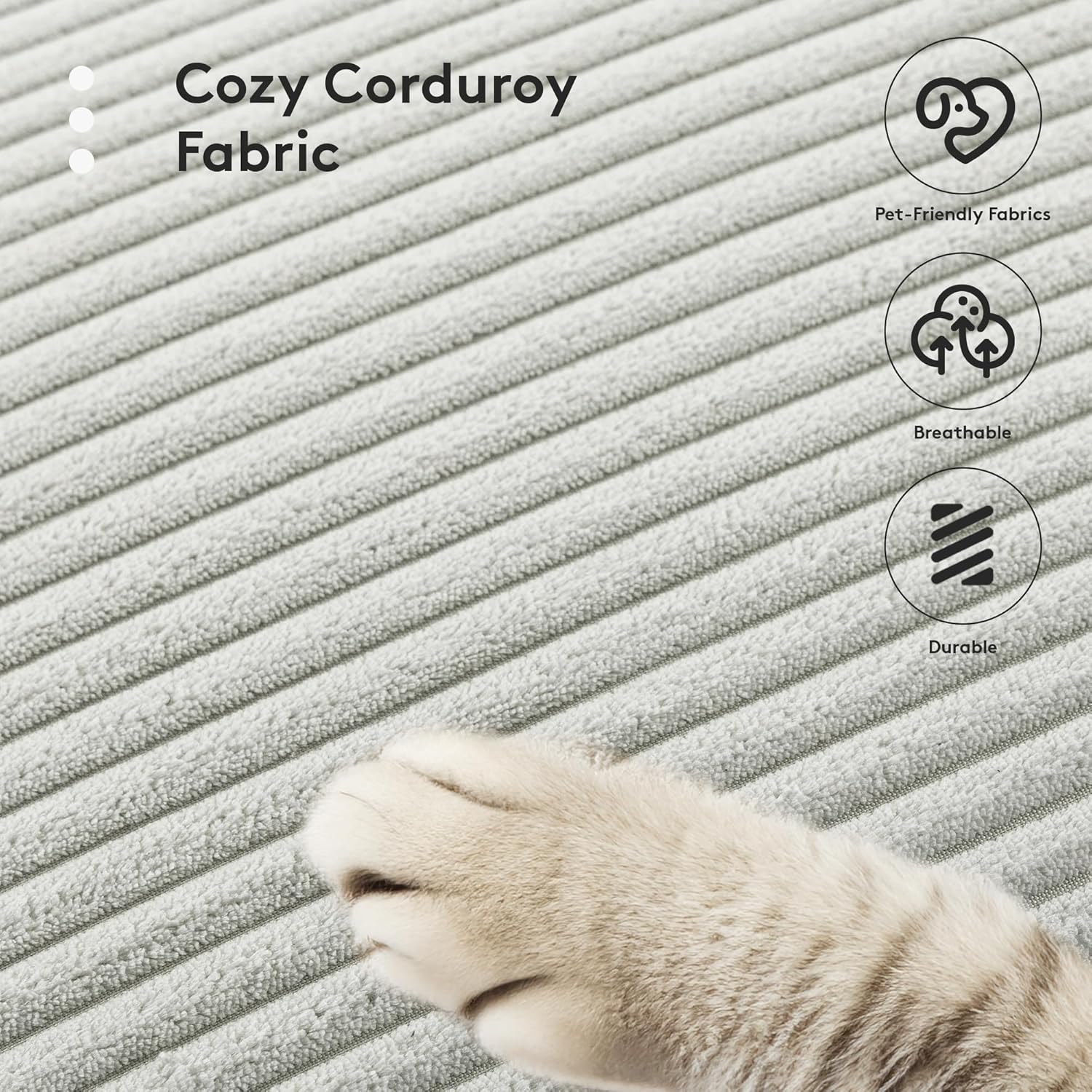 - Luxurious Corduroy Comfort: Sink into ultra-soft, textured corduroy upholstery in a versatile. the cloud sofa are paired with 2 removable throw pillows and an ottoman, it delivers ergonomic support for your back, neck, and legs