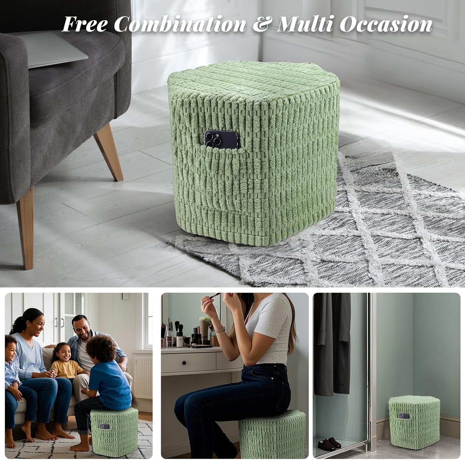 - No Assembly & Quick Fluffy: Our poofy ottoman is vacuum packed without assembly, just open the vacuum-sealed bag and watch it fluff up fast! The poufs for living room corduroy cover is removable and easy to cleanâmachine wash on gentle mode or rinse by hand