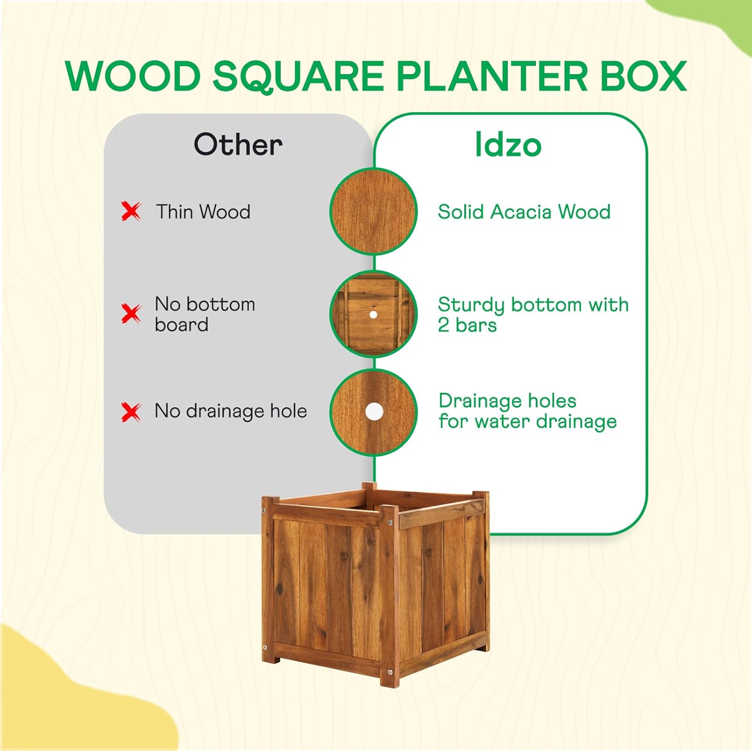 - HIGH-QUALITY ACACIA WOOD CONSTRUCTION: This herb garden planter outdoor is made from durable Acacia wood; Its natural wood grain adds a touch of nature to your living space, ideal for growing plants