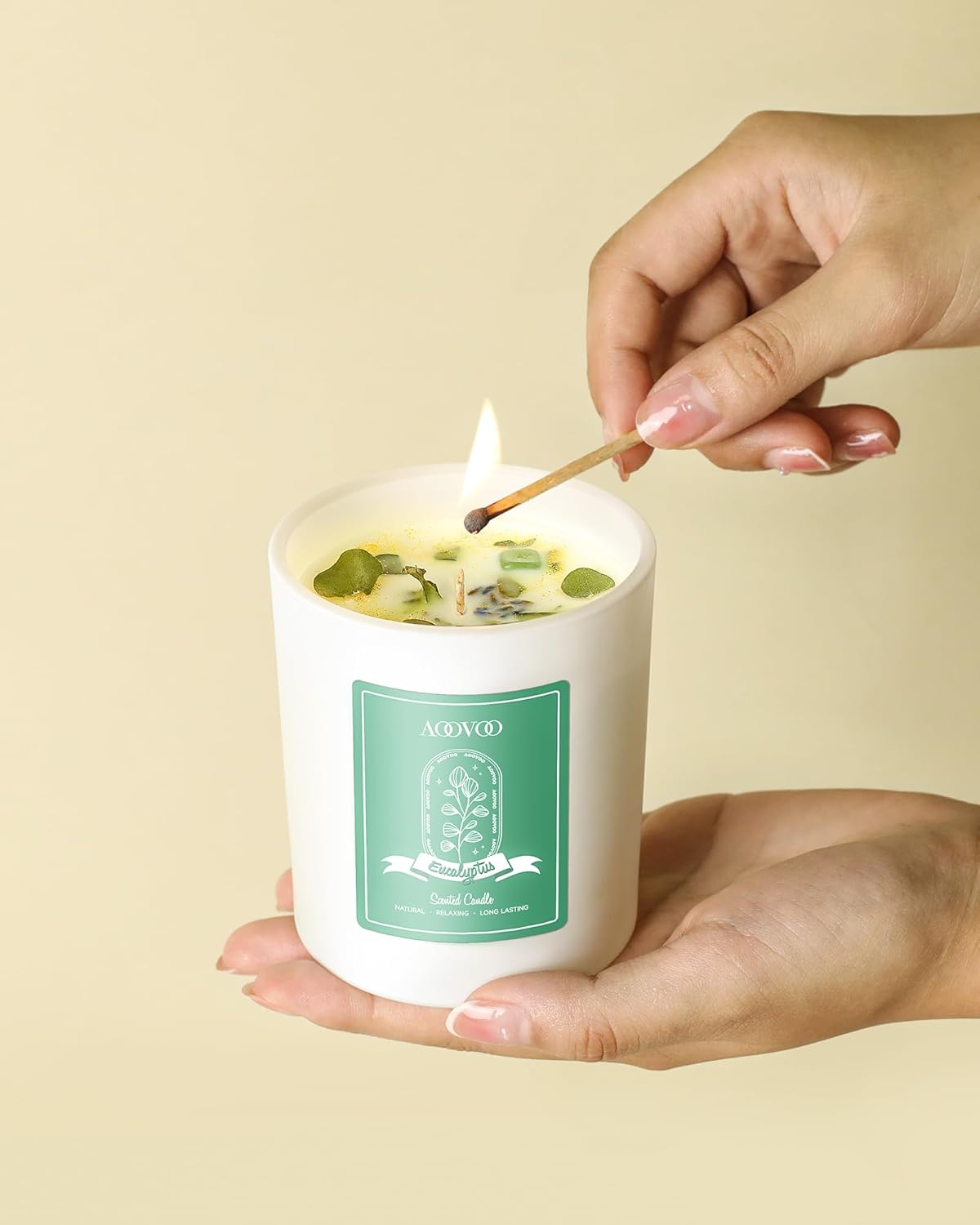 AOOVOO Eucalyptus Mint Scented Candles for Women - Aromatherapy Candle with Crystals Inside, 10oz Soy Candles for Home Scented, Mothers Day Birthday Gifts Candle for Women Mom