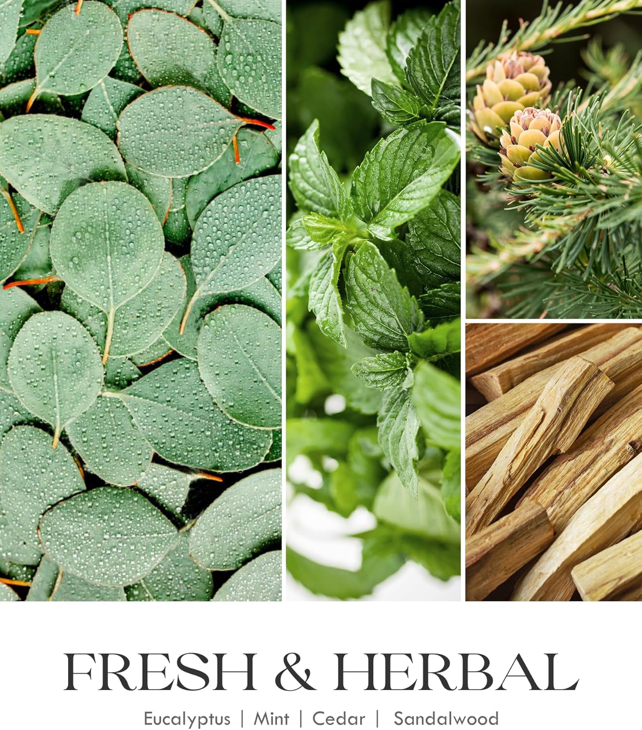 - HIGHLY SCENTED EUCALYPTUS Mint CANDLE: Immerse yourself in the crisp, herbal freshness of our Eucalyptus Mint scented candle. Bright top notes of bitter orange leaf, bergamot, and cool mint awaken the senses, while a soothing heart of eucalyptus, linden blossom, and magnolia brings balance and calm. Grounded by warm cedarwood, lavender, and sandalwood, this clean, nature-inspired fragrance evokes the feeling of a peaceful walk through a sunlit forestârefreshing, relaxing, and deeply restorative