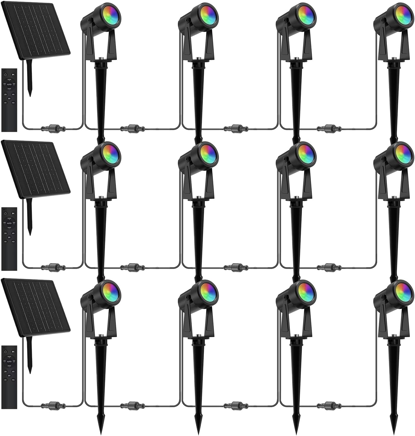 ZYAN Solar Spotlights Outdoor, Solar Landscape Lights with Remote Control, RGBW Colored Spot Lights for Yard, Garden, Lawn, Plant, Tree, Pool Areas, Auto On/Off, Dimmable & Waterproof (12 Pack)