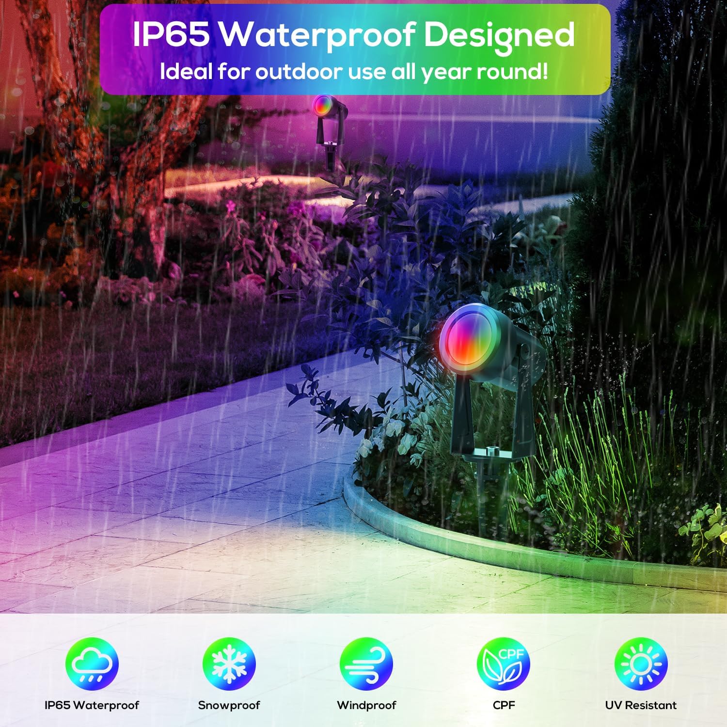 - 【Various Color Options & Timer Function】ZYAN RGB color-changing landscape spotlights with 8 fixed color modes and 1 automatic color change mode. Various Color Options perfect for Nightly Light Show and add holiday atmosphere like Halloween, Parties, Christmas, New Year, etc. Adopted Remote Control, which is convenient and easy for you to adjust light brightness, change light colors, switch lighting modes and set timers Anywhere and Anytime that save more Energy.