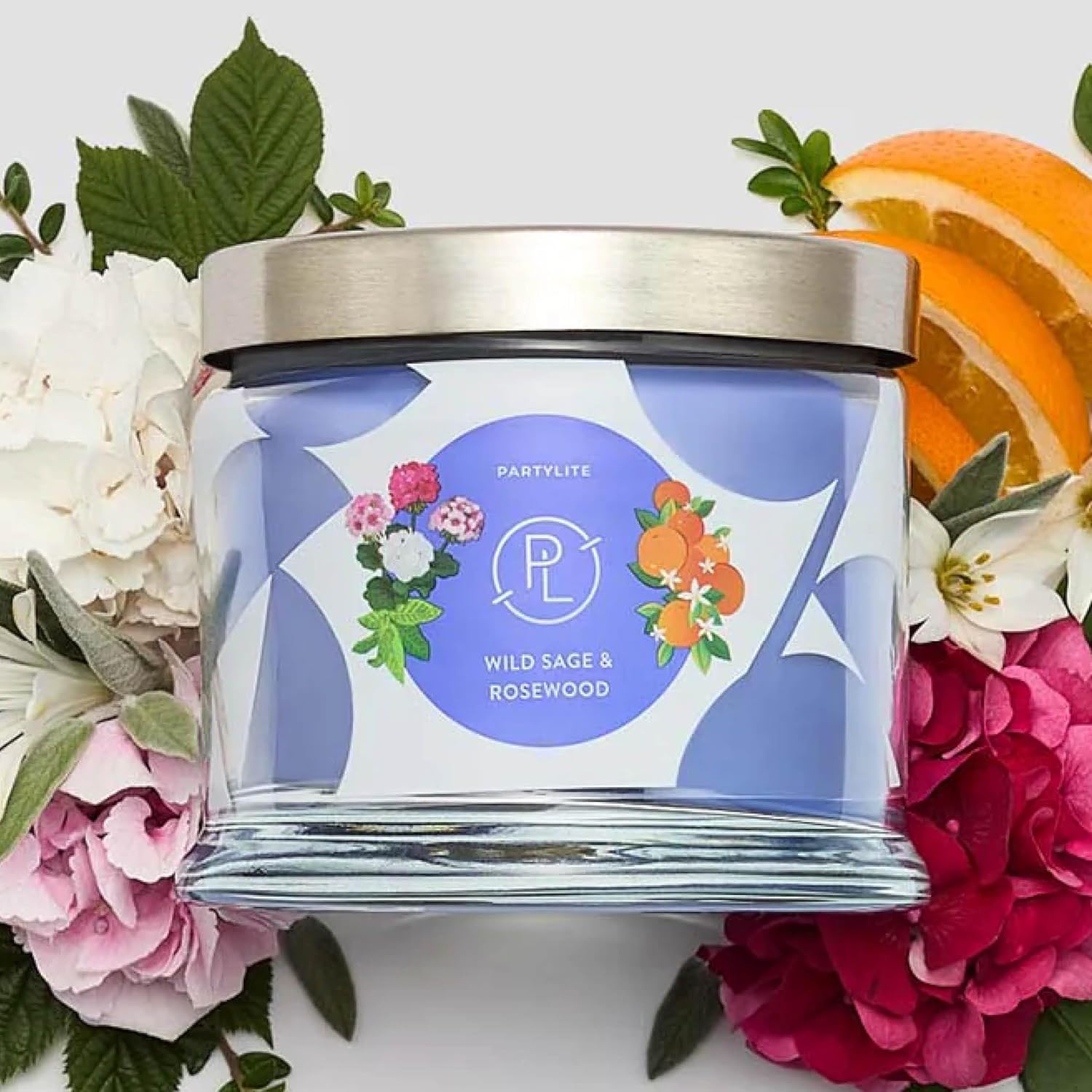 PartyLite Wild Sage & Rosewood Scented, Notes of Sage Leaf, Rosewood, Geranium Petals and Lemongrass, 13.2oz 3-Wick Jar Candle, 45 Hour Burn Time, Luxurious Fragrance, Ideal for Gifting