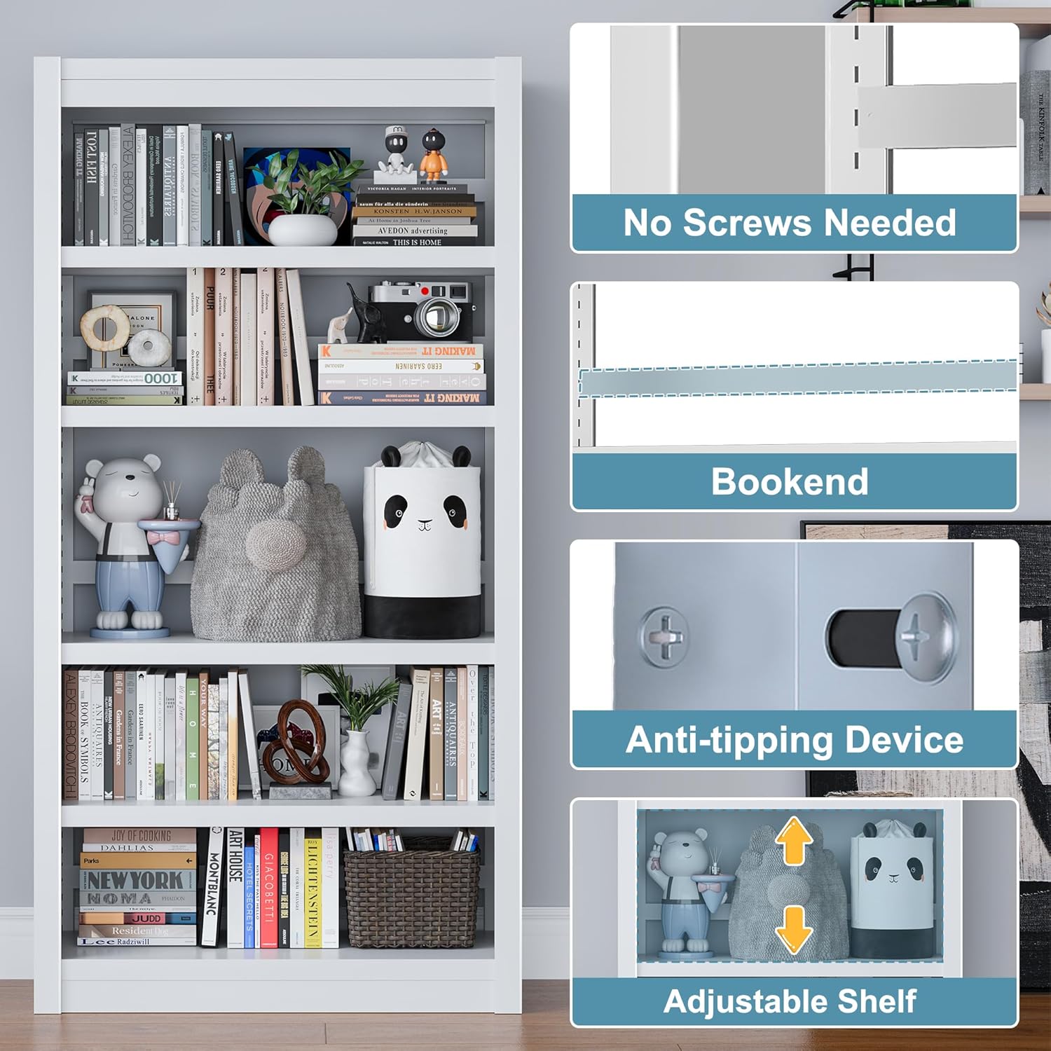Bookshelf, 5-Tier Sturdy Bookcase, Adjustable Book Shelf, Large Capacity per Shelf, Modern Book Shelf for Living Room, Home Office, Garage, Ideal for Home Organization & Stylish Upgrades