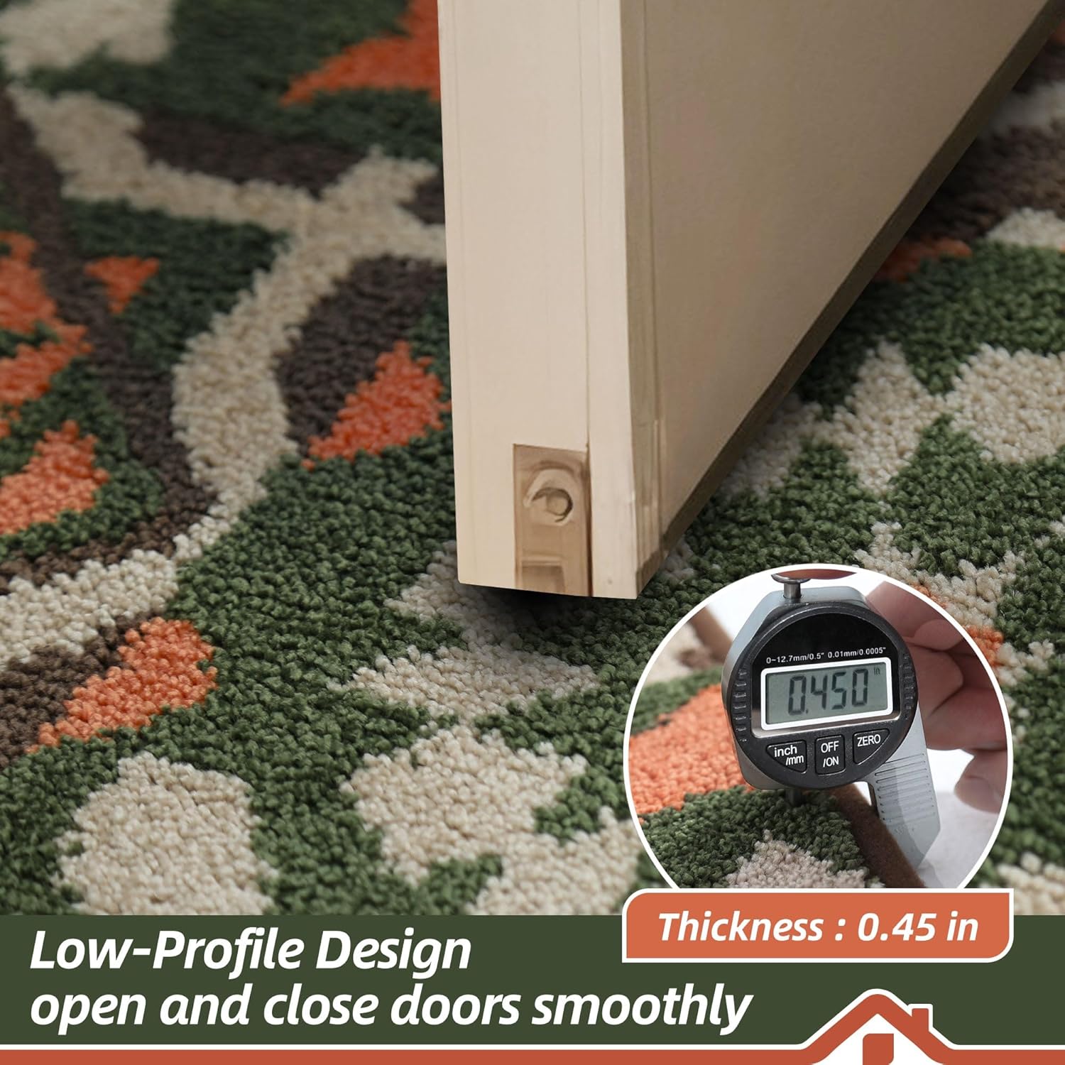 - Stylish and Low Profile Design: Boho geometric floral patterns are suitable for most kinds of home décor. Our doormats measure 32" x 48" x 0.45", low-profile design and reinforced overlock edges to ensure that doors won't get stuck or the door rug go curling. Note: Please confirm the height of the door gap before purchasing