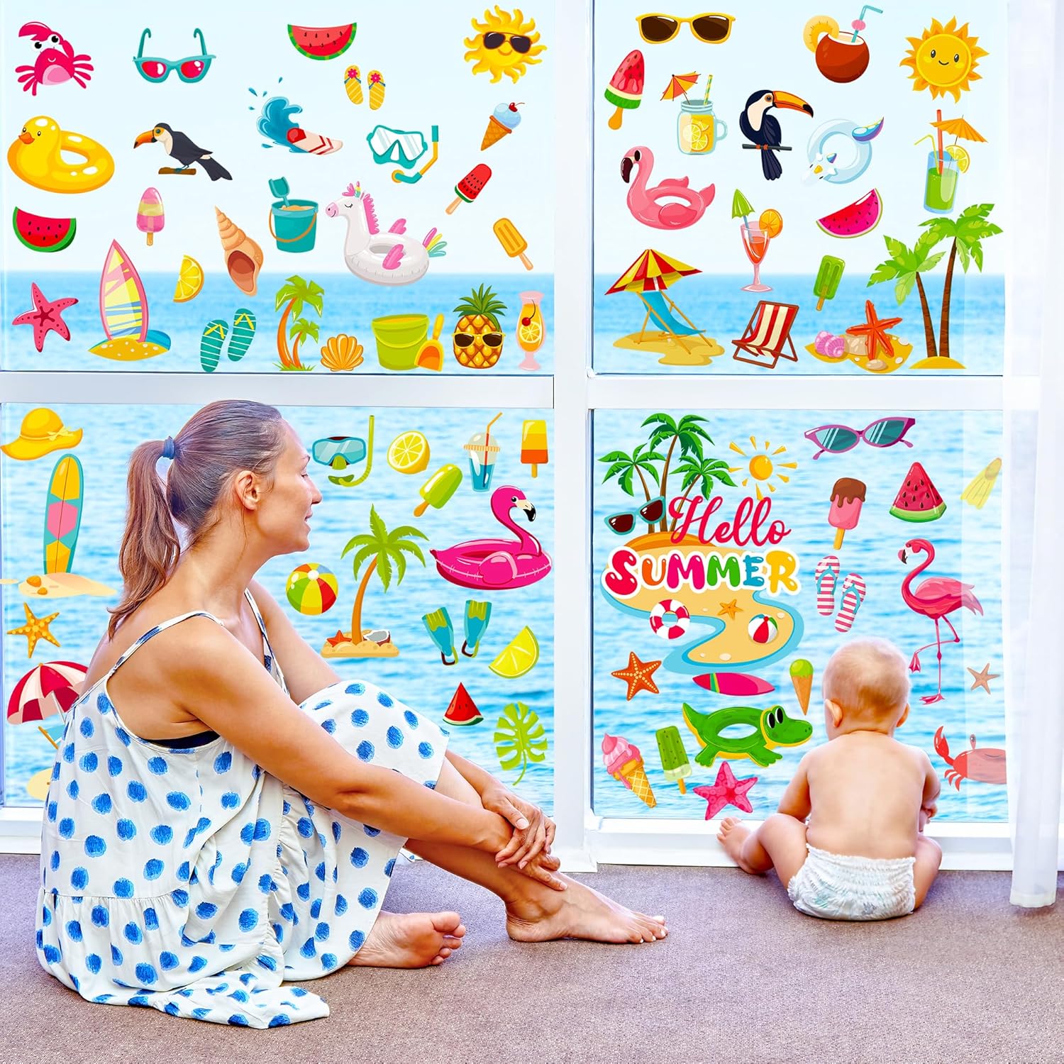- Summer Design: These summer beach window clings showcase vibrant graphics like sun, beach, parasol and the phrase "HELLO SUMMER," instantly creating a lively atmosphere.