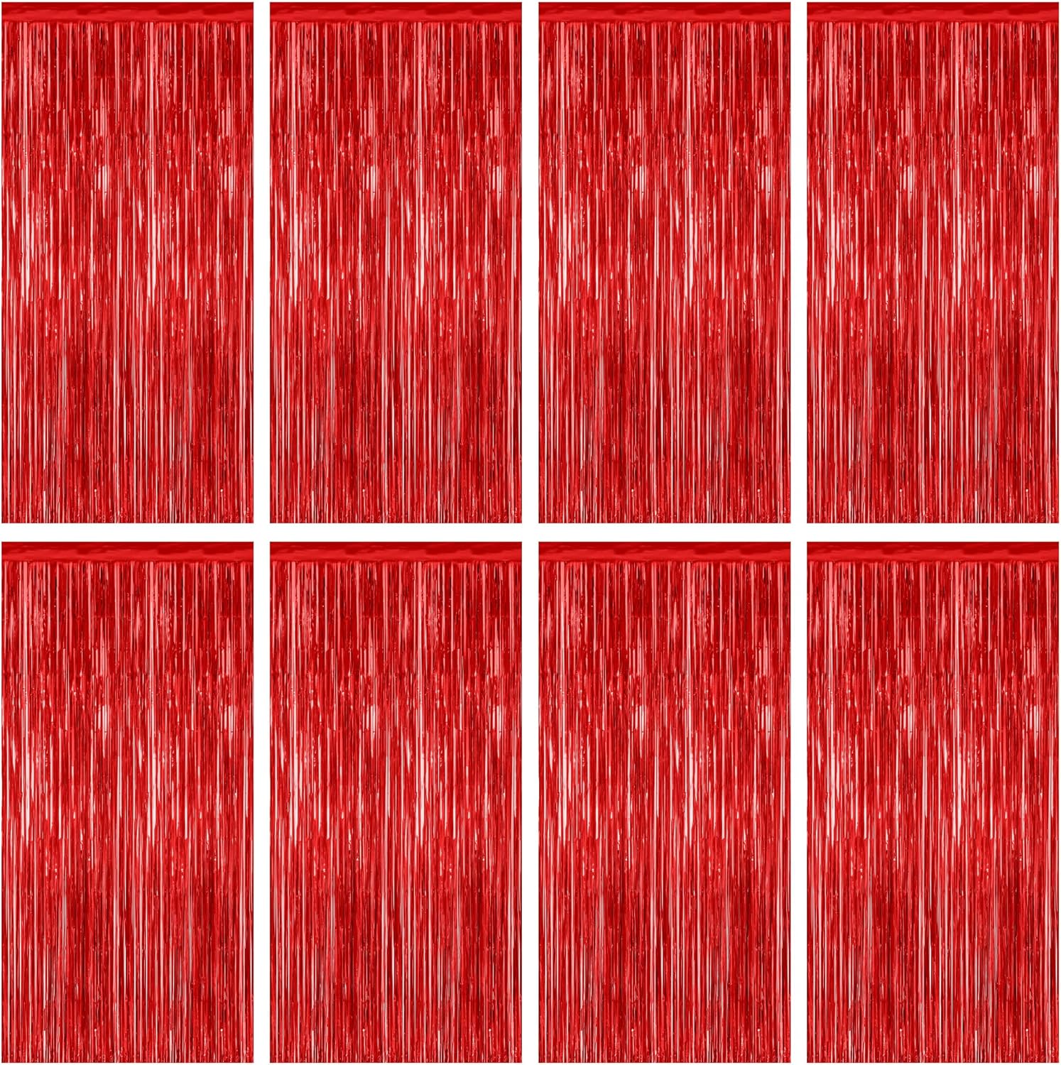 8 Pack Red Backdrop, 3.28 FT x 7.05 FT Streamer Party Decorations, Metallic Foil Fringe Curtains Party Streamer Photo Booth Backdrop, Red Tinsel Canival Theme Party Decor for Engagement Birthday