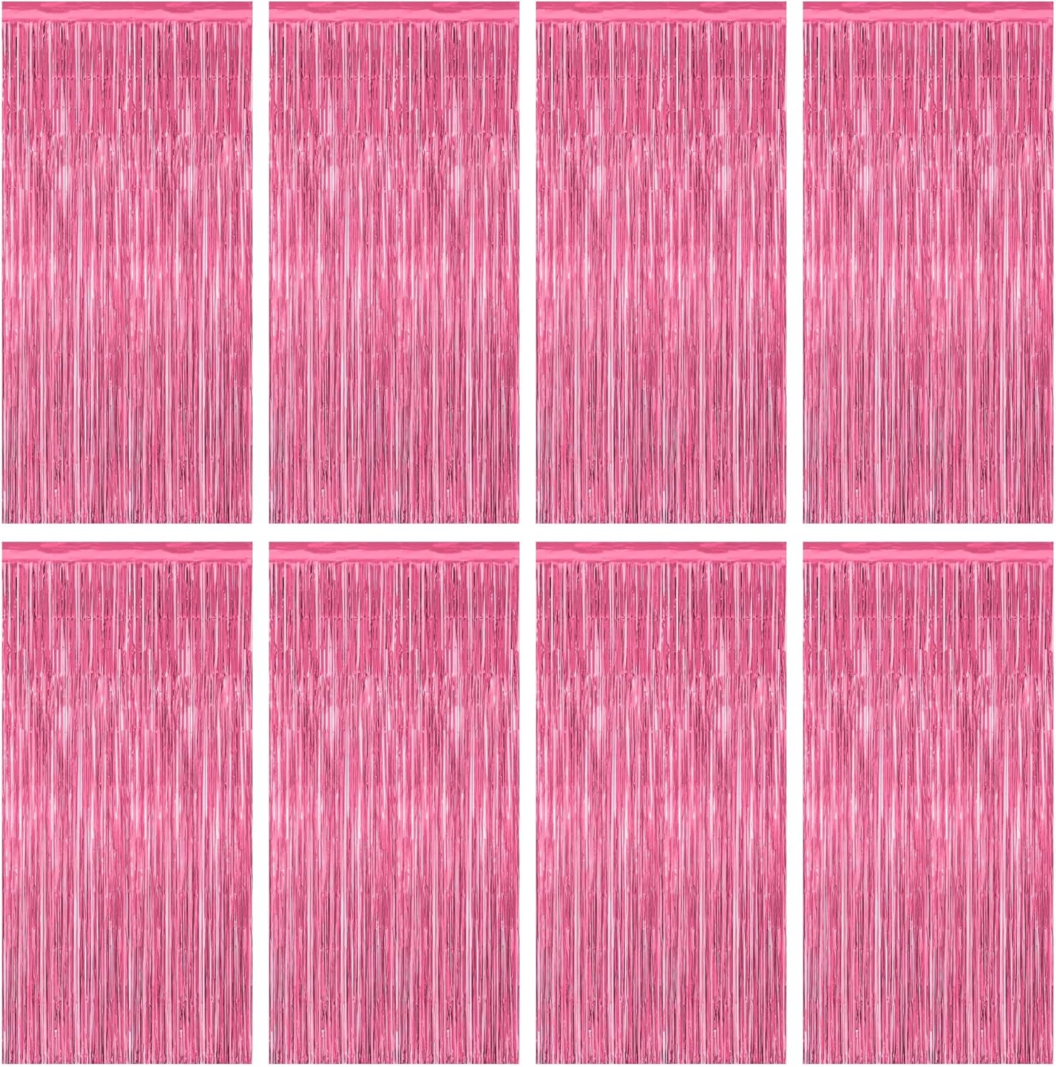 8 Pack Pink Backdrop, 3.28 FT x 7.05 FT Pink Birthday Decorations, Metallic Pink Backdrop for Photoshoot Foil Curtains Party Streamer, Bachelorette Decorations Birthday Photo Booth Props
