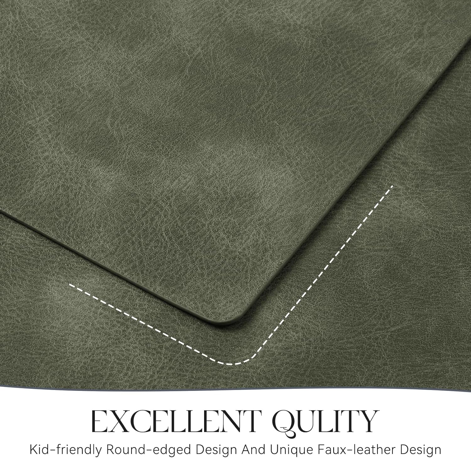 - PREMIUM QUALITY AND DURABLE: MOSAYT leather placemats are made of high quality faux leather, designed for long term use. Fine workmanship ensures superior quality and long-lasting durability of the placemats, easily protecting your table from scratches and stains.