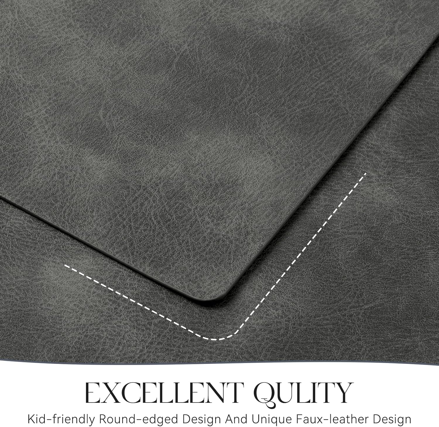 - HASSLE-FREE CLEANING: Our faux leather placemats are designed to be 100% waterproof to better protect the table from grease and grime compared to woven and fabric placemats. If the placemats get stained with sauce or food residue, simply wipe with a cloth or rinse with water.